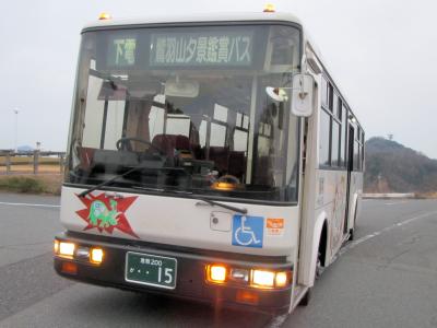 鷲羽山夕景鑑賞バス JR児島駅を出発し、ホテルを廻って、2カ所で夕景をながめます。時期によって、出発時間が違いますので、HP等で確認してください。500円です。コストパフォーマンスは大変良いです。絵はがきを貰えました。夕景鑑賞バスといっても、天気が良くないと、きれいな夕景は鑑賞できません。私が行った時は、曇ってました(^_^;)