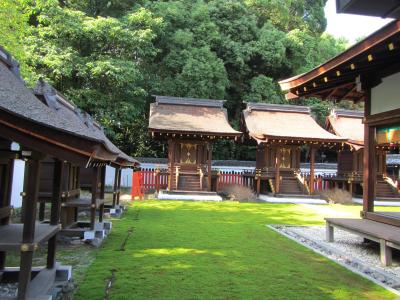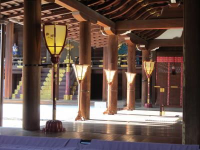 賀茂御祖神社(下鴨神社)普段行くと、神社と言うより、神式結婚式場という感じです。神社も、結婚式を主な収入源としているのでしょう。本殿の2棟は国宝になってますが、普段は、隙間から一部が覗いて見えるだけです。ただ、特別拝観の日があって、このときは、間近に見ることができます。ただし、その国宝本殿の撮影は残念ながら不可となっています。