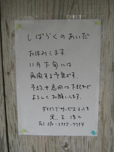 4.ダイビングサービスふしま 写真のところです。メンバーの希望をきいてくれたり、他ではいけないポイントも行ってくれる。写真のように休みが多いのが難点。