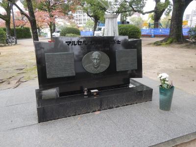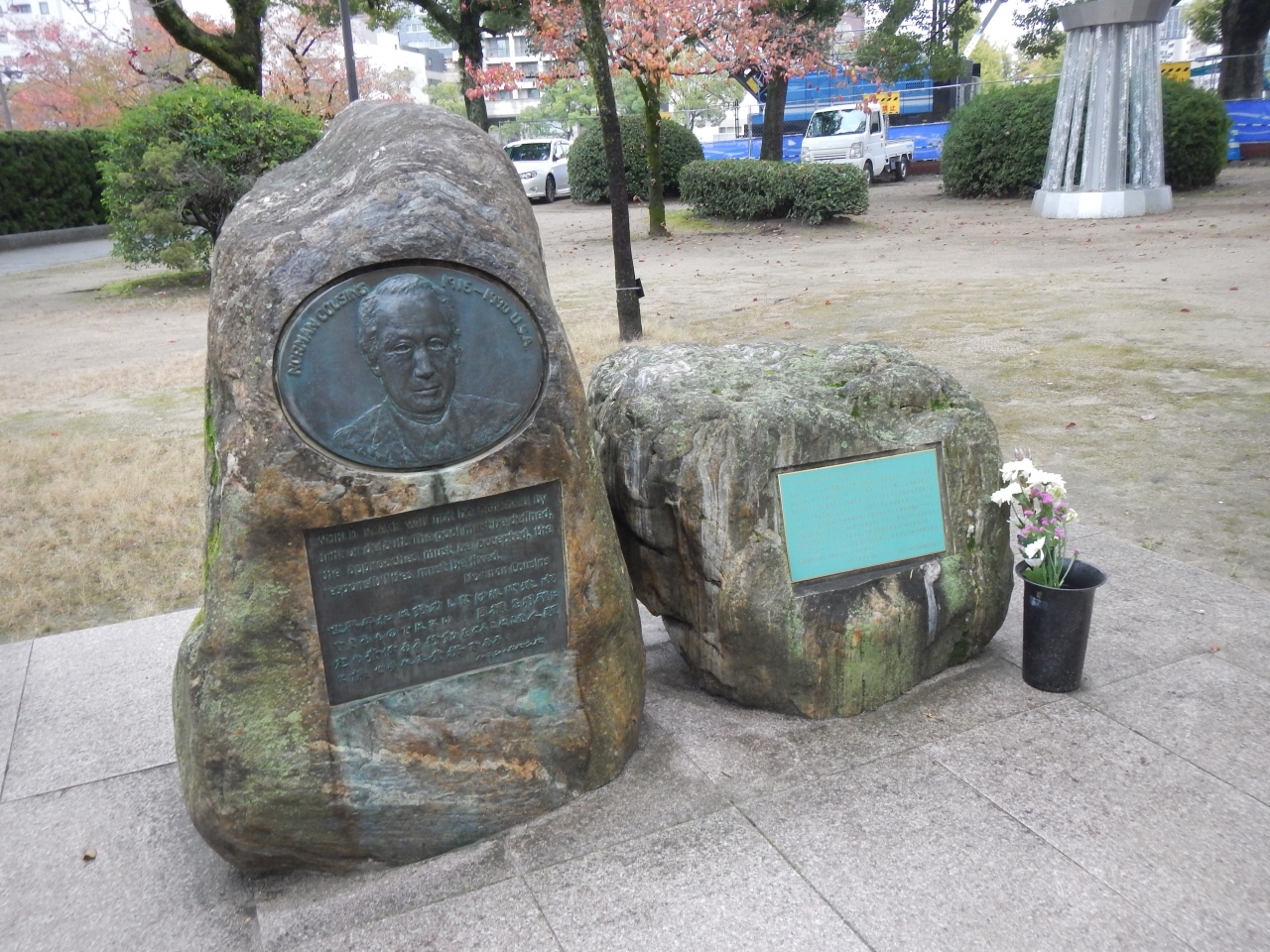 2015年11月碑には日本語と英語で説明文が書かれています。残念ながら、高さが低いので、目立ちません。白い菊の花がそなえられていました。