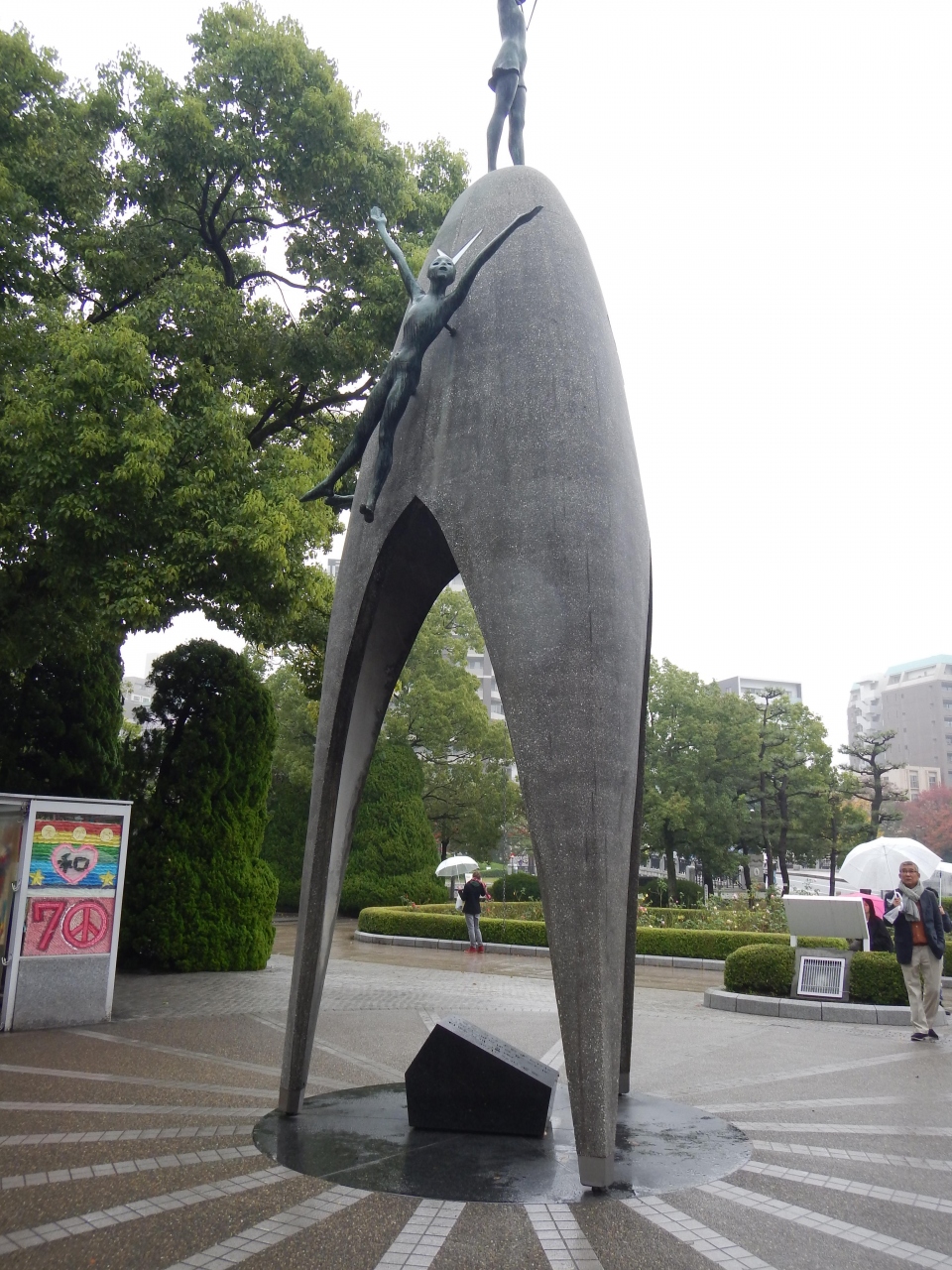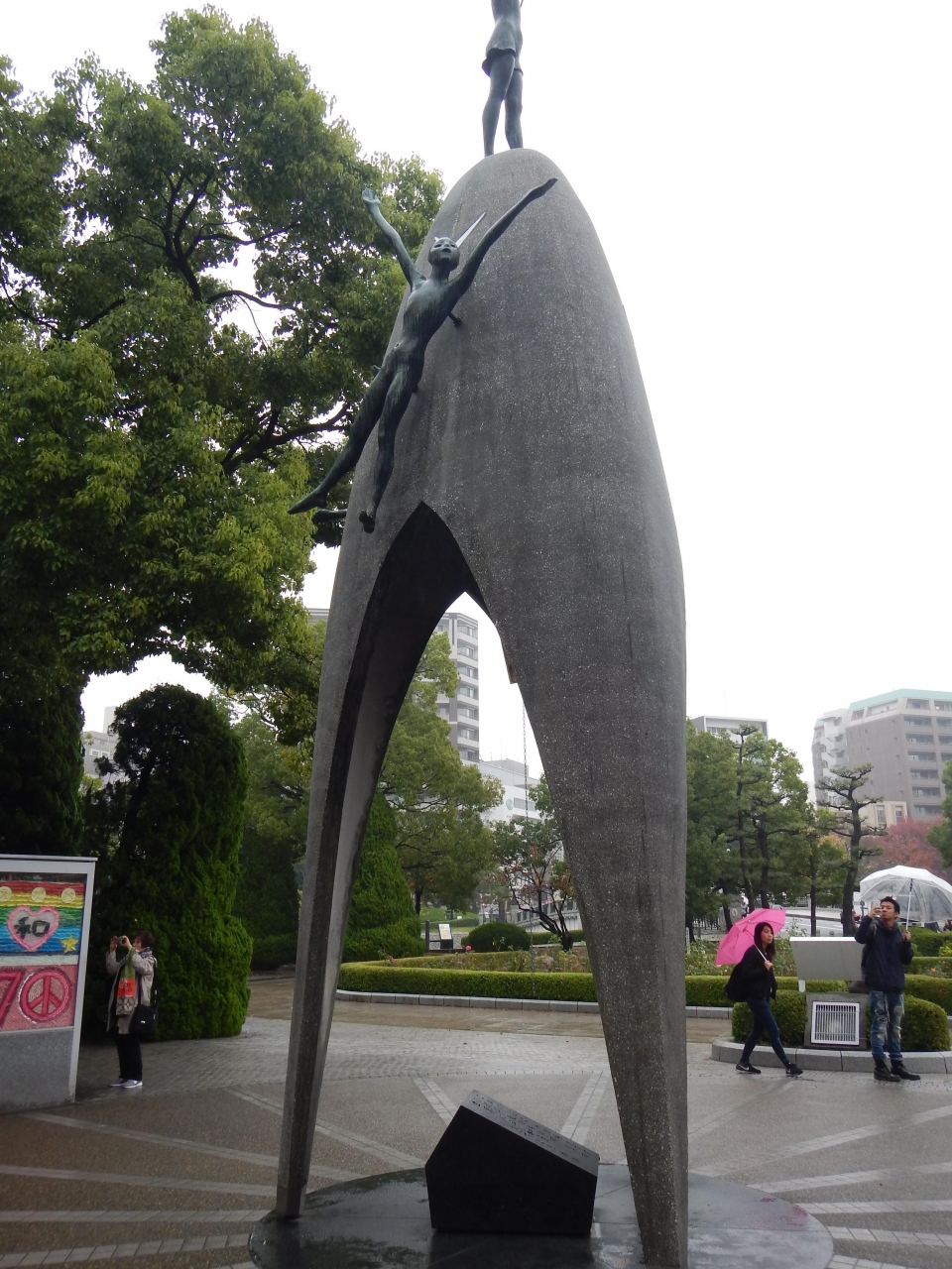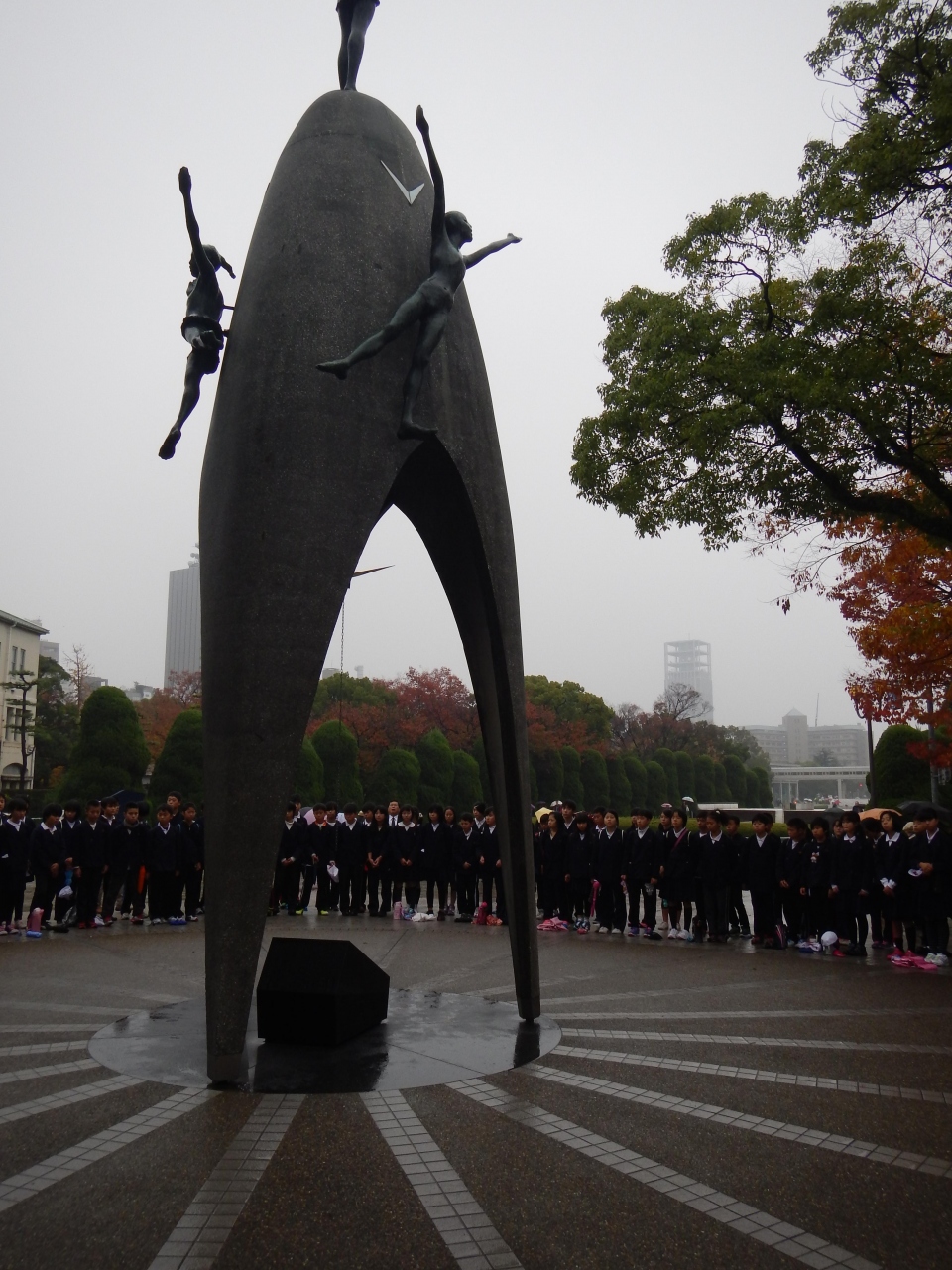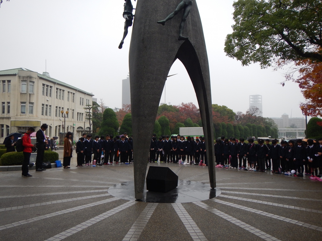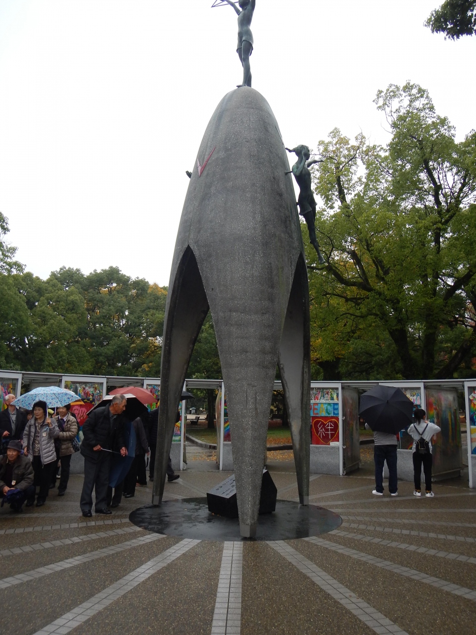 2015年11月再訪。折り鶴を「原爆の子の像」へ捧げることも出来ます。訪れたとき、ちょうど、小学生の団体がこの像を囲んで、『折り鶴』を合唱していました。