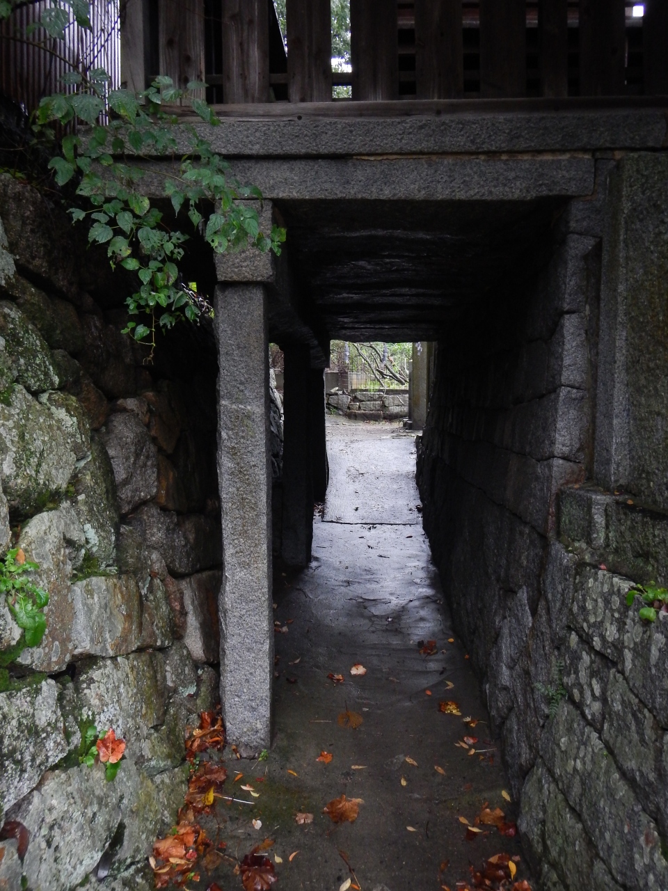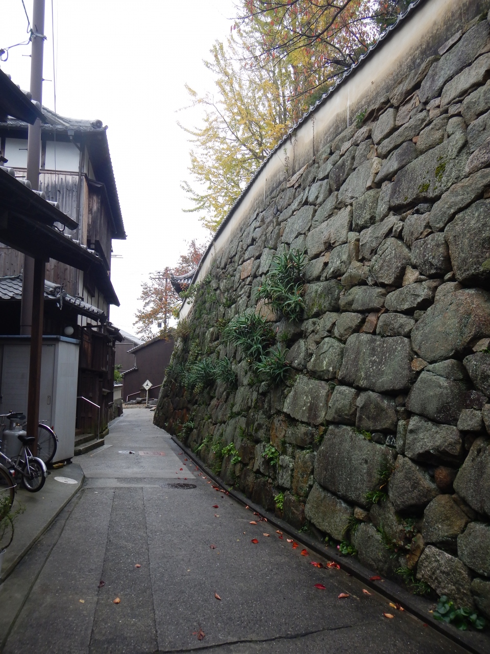 2015年11月ただのお寺の石垣です。大阪城の石垣とかとは、比べものになりませんが、港町の路地の奥に突然現れるところに価値があります。
