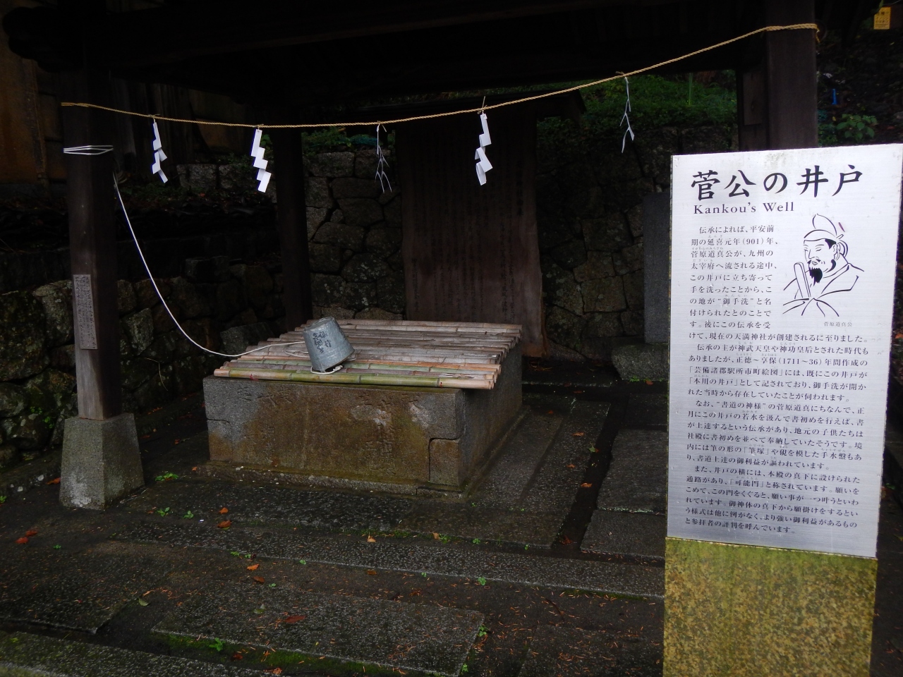 菅公の井戸があります。菅公の歌 「我たのむ 人をむなしくなすならば 天が下にて名をやなかさん」を刻んだ、自然石の大きな歌碑があります。