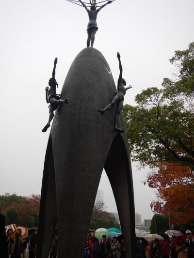 2015年11月路面電車「原爆ドーム前」下車して、原爆ドーム−元安橋を渡り−原爆の子の像−平和の灯火−原爆死没者慰霊碑−平和記念資料館と行くのが定番コースです