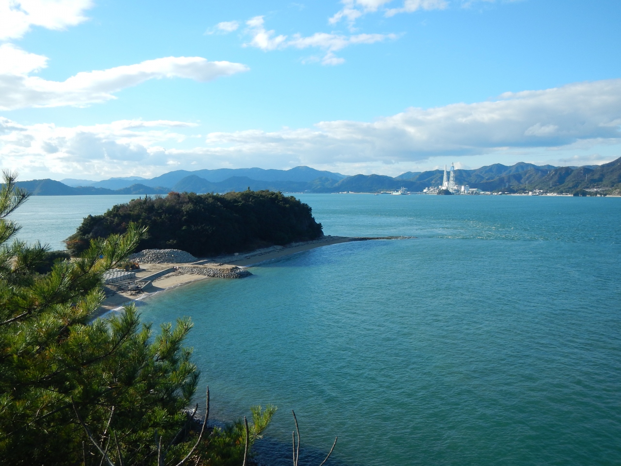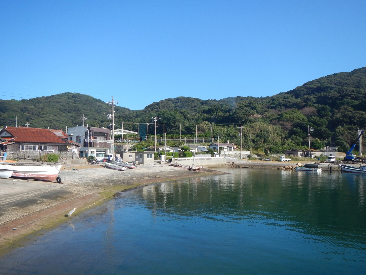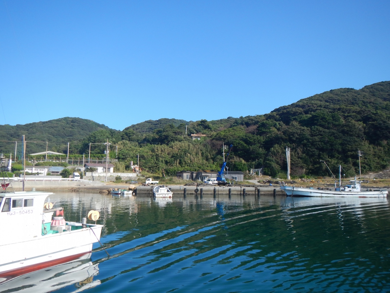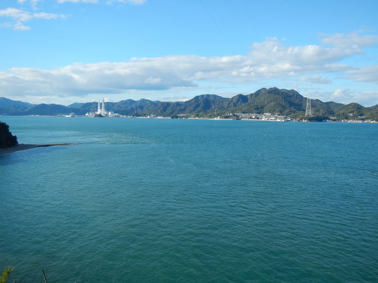 【2015年10月】山口県日本海の孤島 蓋井島の向浜。島の東の端の浜です。対岸の本土側が正面に見えます。