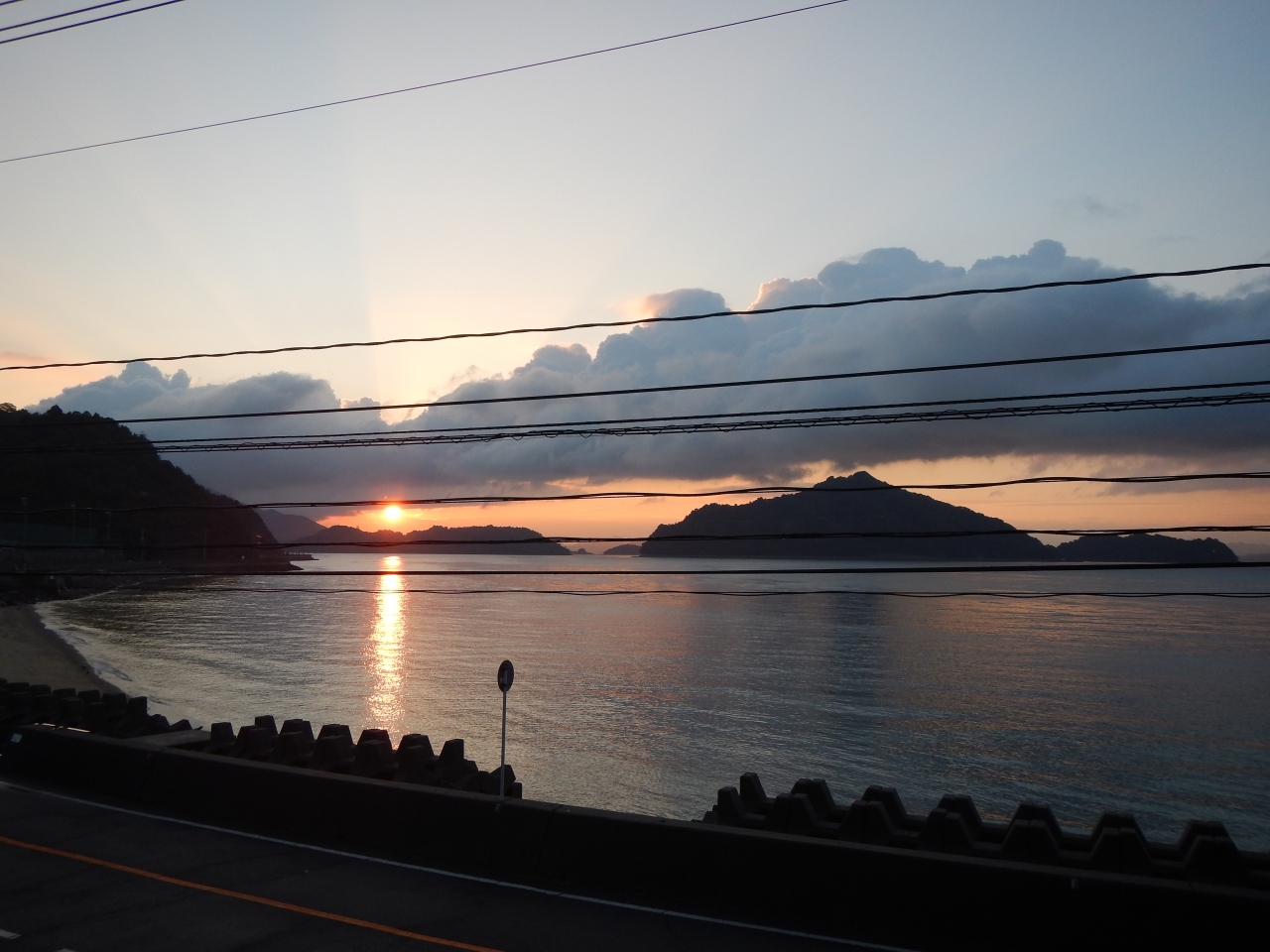 目の前が海。目の前の海(島の上ですが)から朝日が昇ってきました。