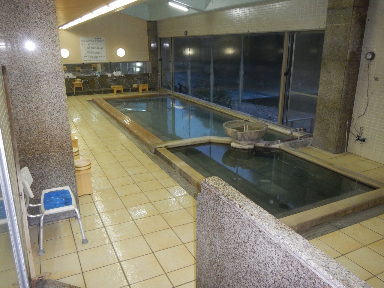 そのまま、日帰り入浴で温泉に入ろうかと思って、フロントに聞くと、なんと、宿泊客には、翌日もチェックアウト後も追加料金無しで入浴可ということでした。
