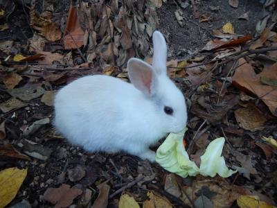 えさを持っていないと、うさぎさんは寄ってきません。残念ながら島ではうさぎさんのえさは売っていません。