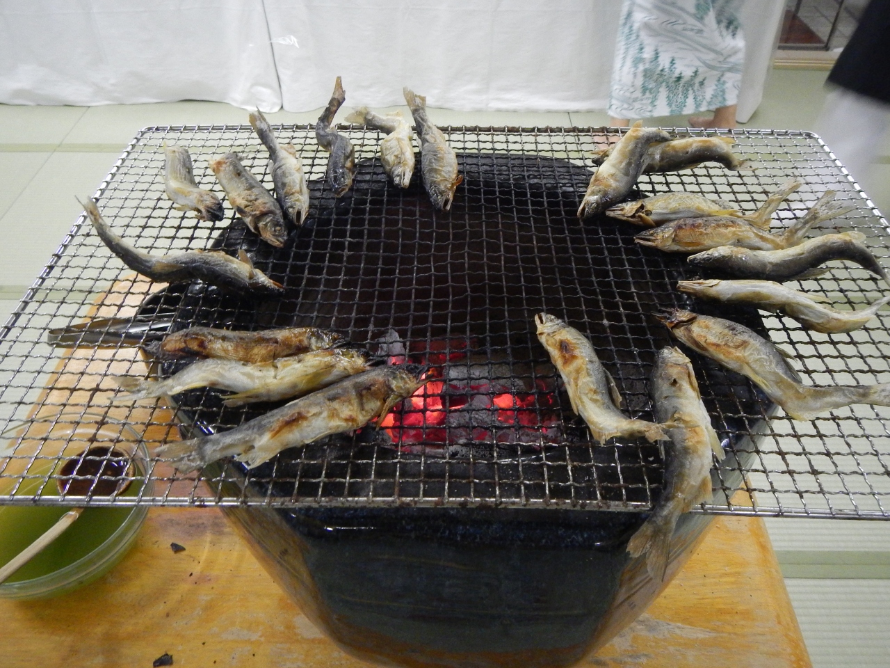 売店では、乾燥した天然鮎(写真)が売ってました。7.8匹入って500円、その場で食べることが出来ました。パリパリして美味しかったです。