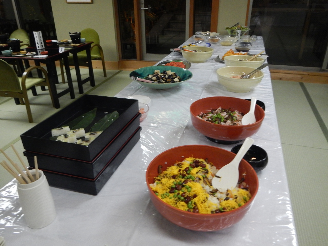 2015年10月 3連休の中日 社員旅行の団体客がいたので、夕食は川沿いのレストランでは無く、別の宴会場でした。