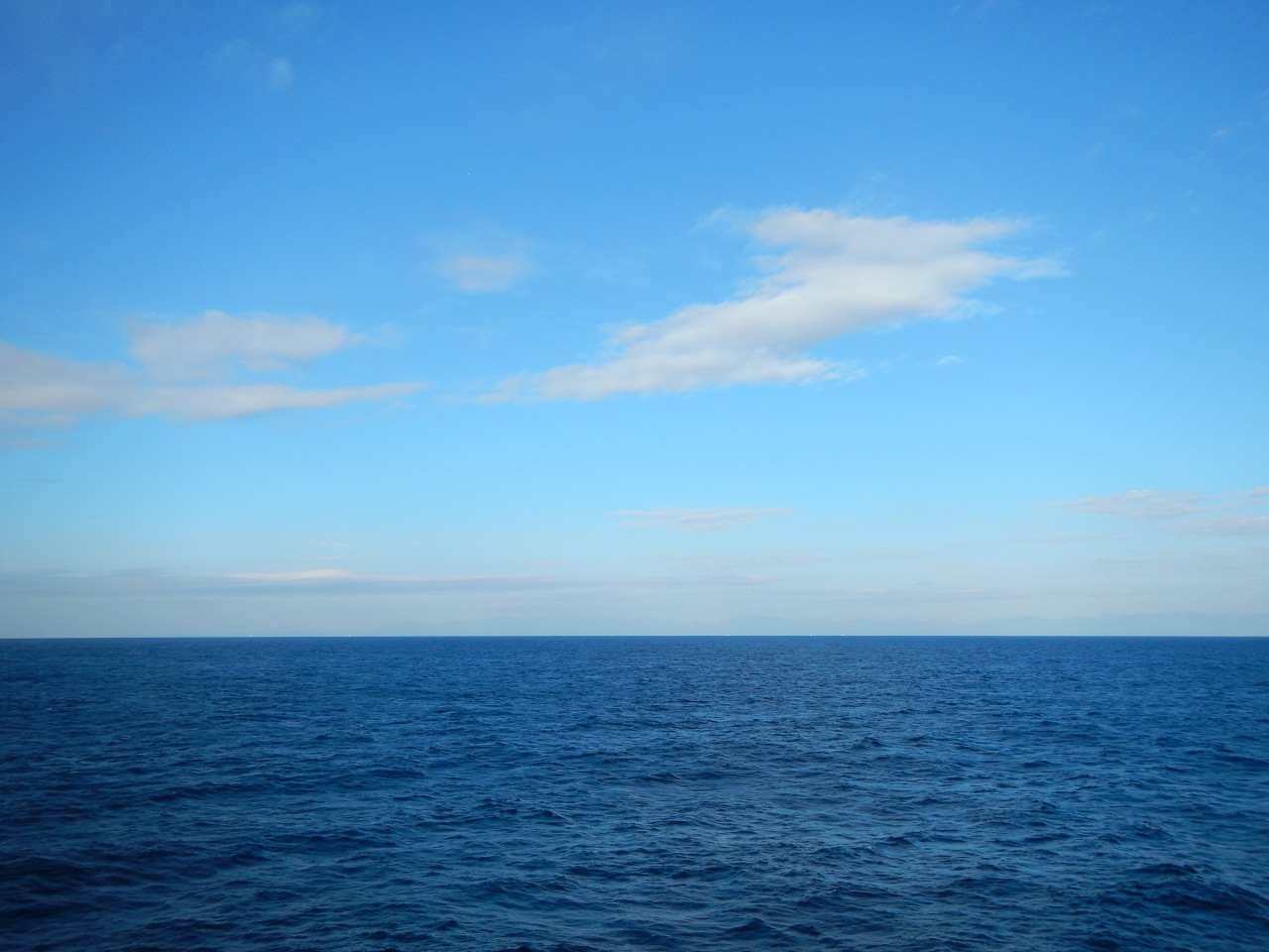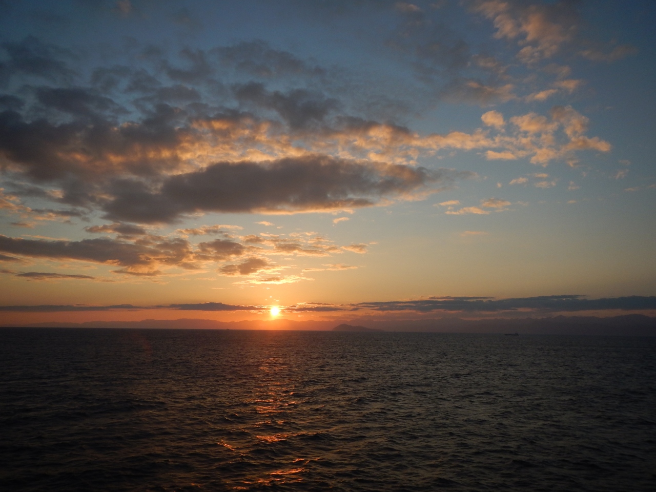客室はオーシャンビューです。11月3日の朝、客室正面の海から朝日が昇ってきました。