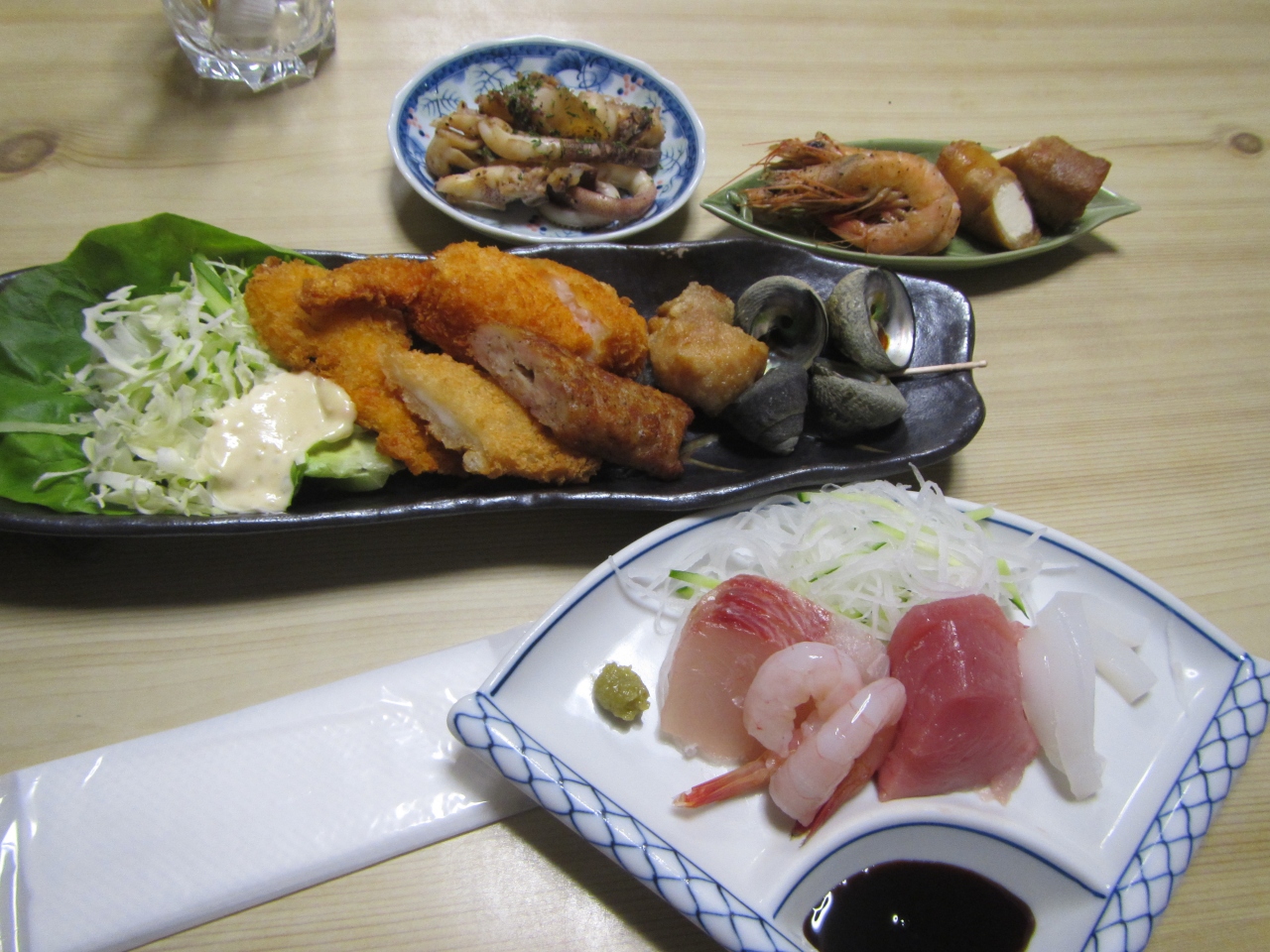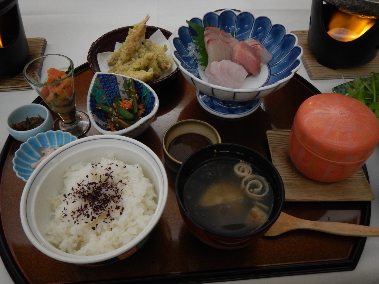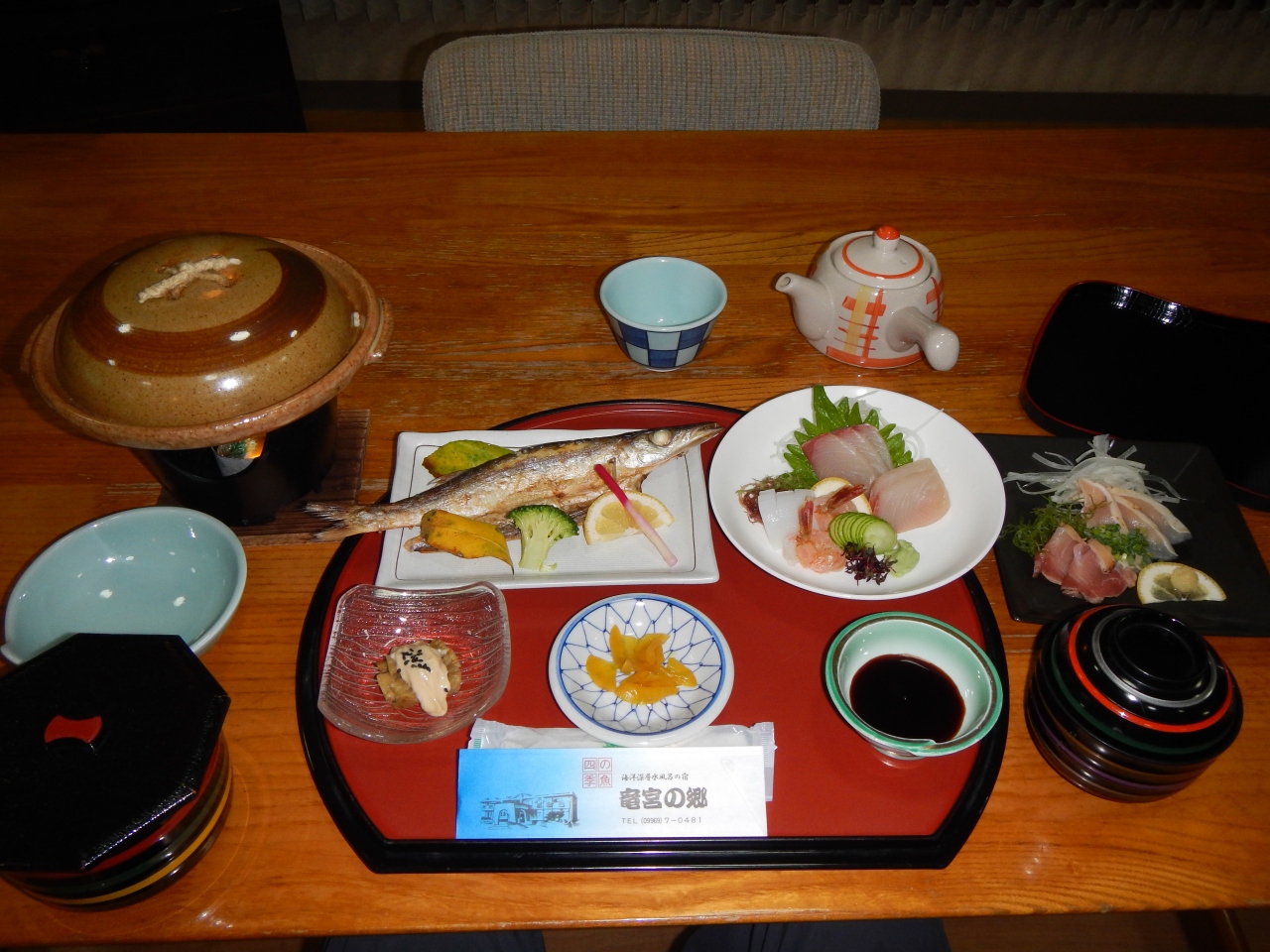 料理は地元の魚が中心です。楽天トラベル等の旅行サイトで唯一予約できる甑島の宿泊施設です。