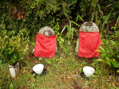 跡ですから、王子社はありません。赤い前掛けが印象的なお地蔵さんが2体あります。