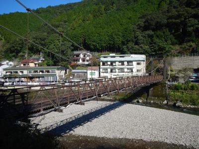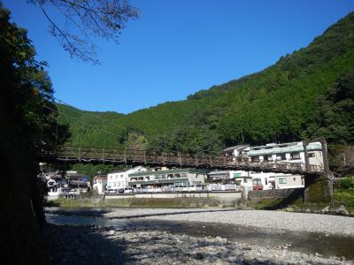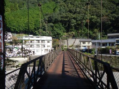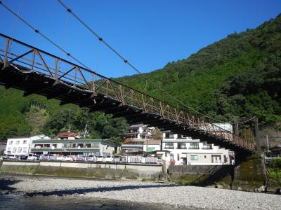 2015年10月 珍しく、吊り橋の対岸の露天風呂にお湯が張られてました。無料の足湯です。