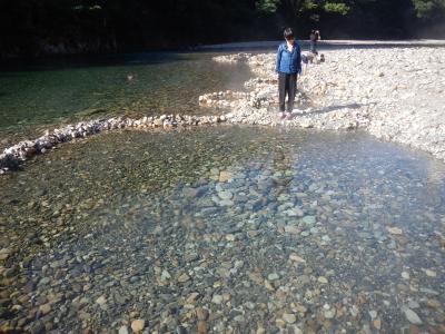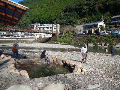 2015年10月 吊り橋の対岸の露天風呂、昨年6回来たときはいつも、お湯がありませんでしたが、今回はお湯が張られてました。無料の足湯です。