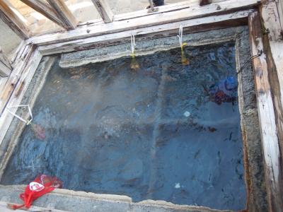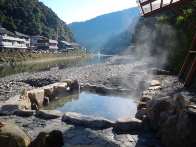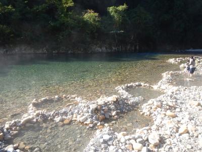 また、亀屋旅館の前でも、河原の掘ったところが天然の温泉になってました。