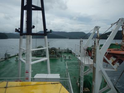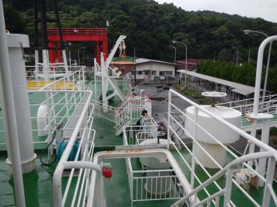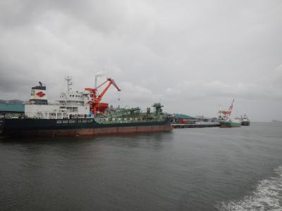 徳山港に到着前に、徳山港で下船する人も含めて、一旦、バスに戻って、バスで下船。