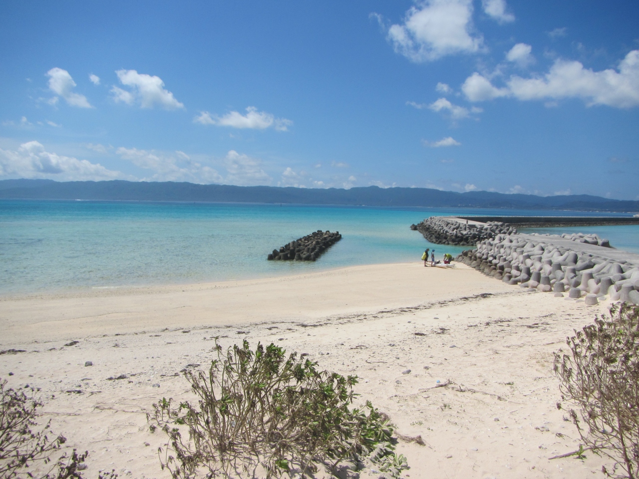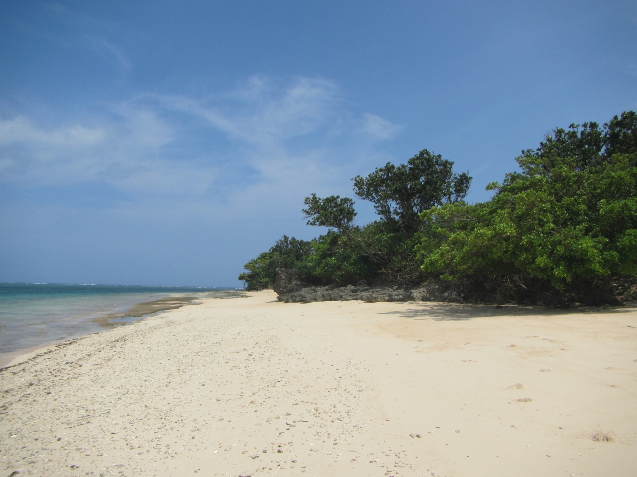 2015年8月。鳩間島の港の東側の砂浜です。集落の前ですので、利用しやすいです。