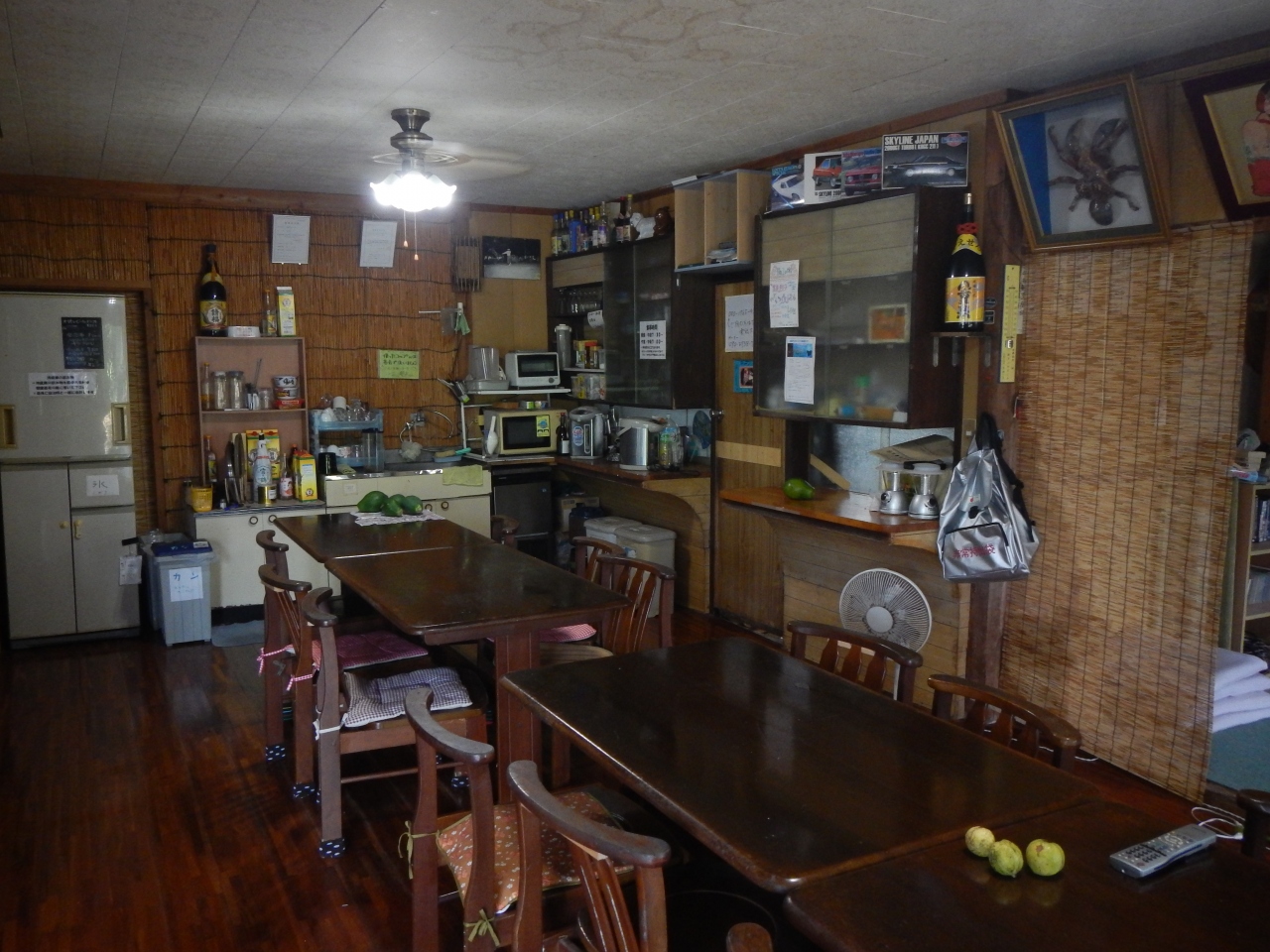 八重山の民宿には珍しく部屋以外で室内でくつろげるスペースがあります。ソファー・食堂の椅子・籐いす・じゅうたん敷きといろいろ共通でくつろげる場所があります。