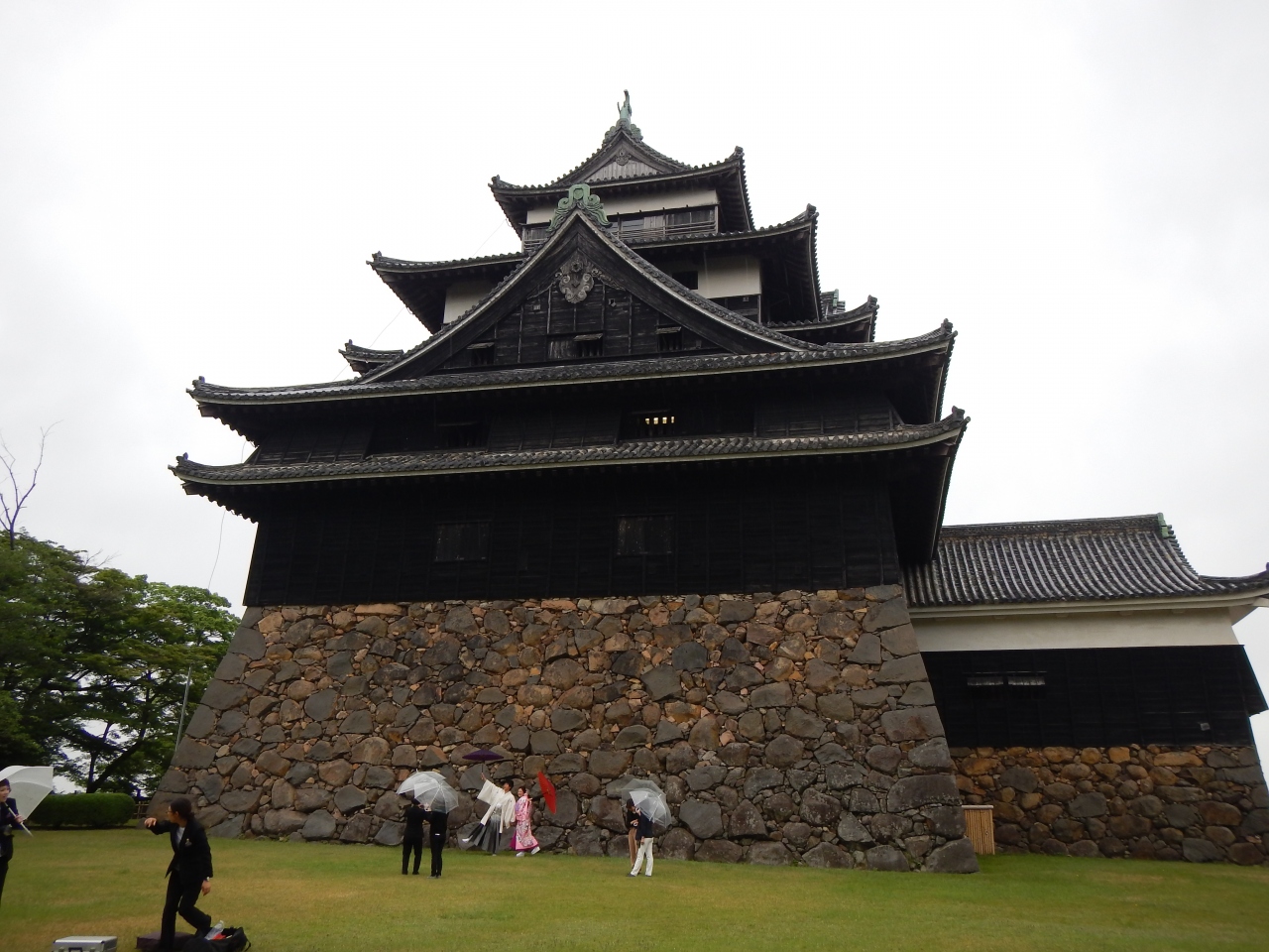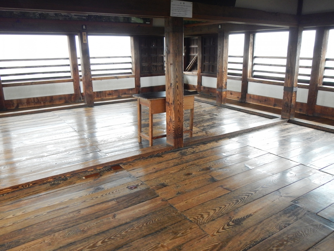 2015年6月松江市内中 【祝松江城国宝へ】と書かれています。本物なので残念ながらエレベーターはありません。