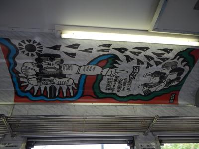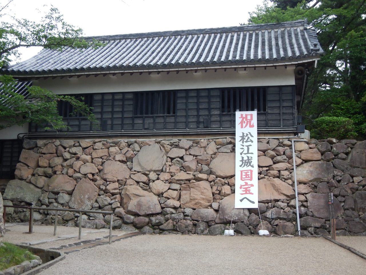 2015年6月松江市内中 【祝松江城国宝へ】と書かれています。残念ながら、まだ国宝では無く、重要文化財なので【祝松江城国宝】とは書けないそうです。案内放送も、重要文化財でした。