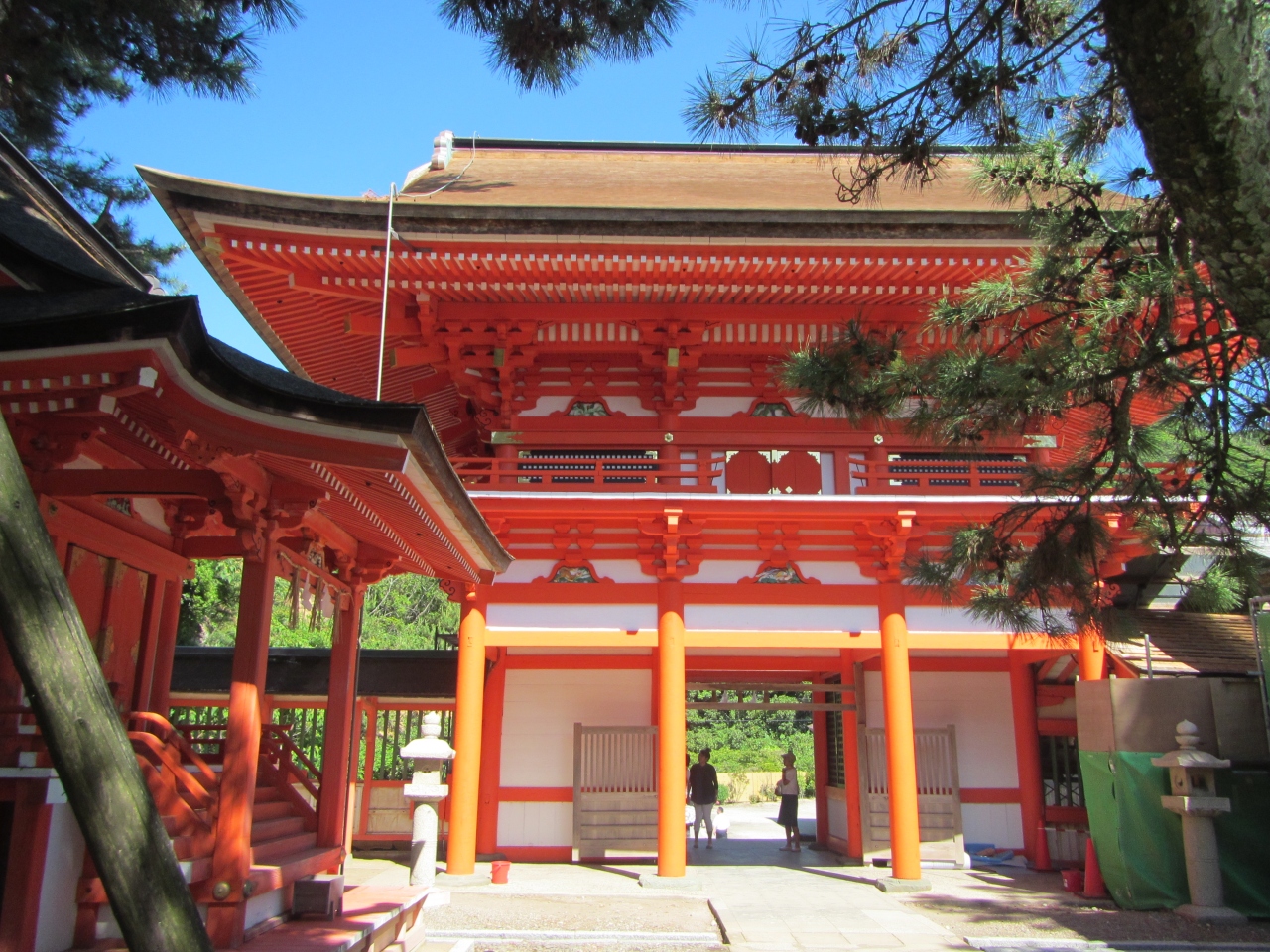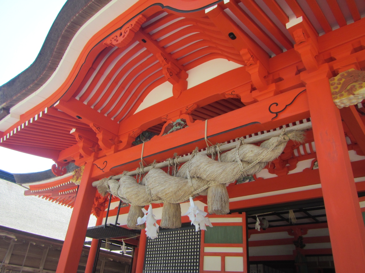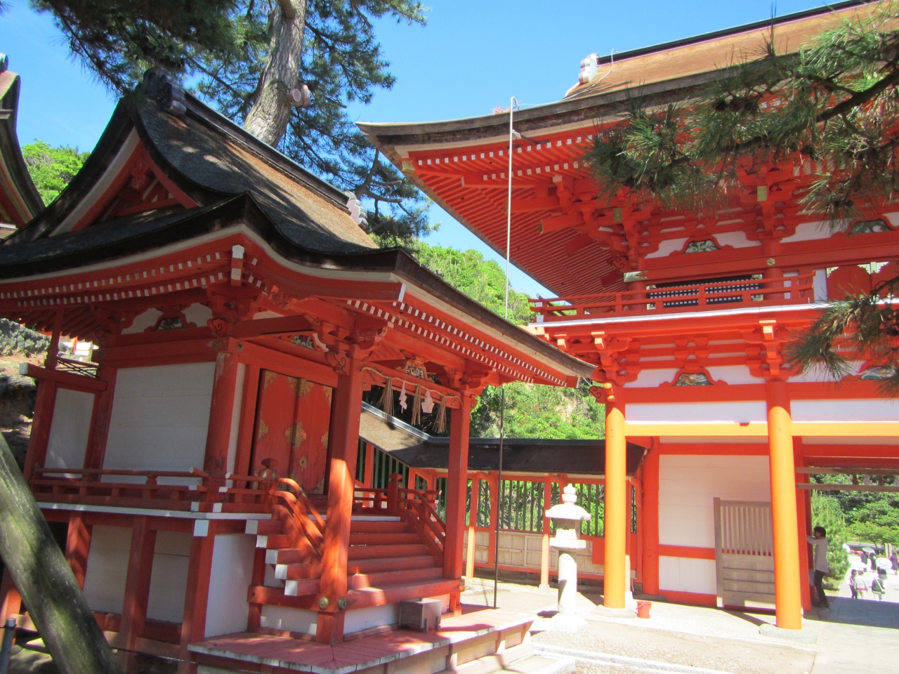 2015年6月一部修復工事中でしたが、朱色の美しい神社です。日御碕バス停すぐ。