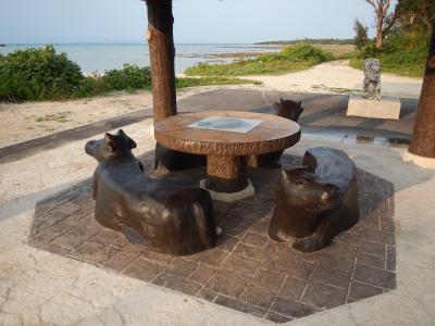 ■伊古桟橋に大変化。アスファルト舗装の駐車場、東屋が出来て、牛の形をしたベンチが出来ました。