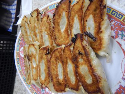 【外観写真だけの実際にお金を払って食べてないニセクチコミに要注意】焼きそば大盛りと餃子3人前を注文しました。出てくるのは早い(焼きそばは注文から2分)ですが、餃子は注文の都度焼いてません。目安で焼いて出しているので、焼き置いていた2人前がすぐに出てきて、後から1人前出てきました。また、若干、焼きすぎでした(写真)。2015年5月の土曜日の昼、待ちは無いけど、ほぼ満員という状態でした。