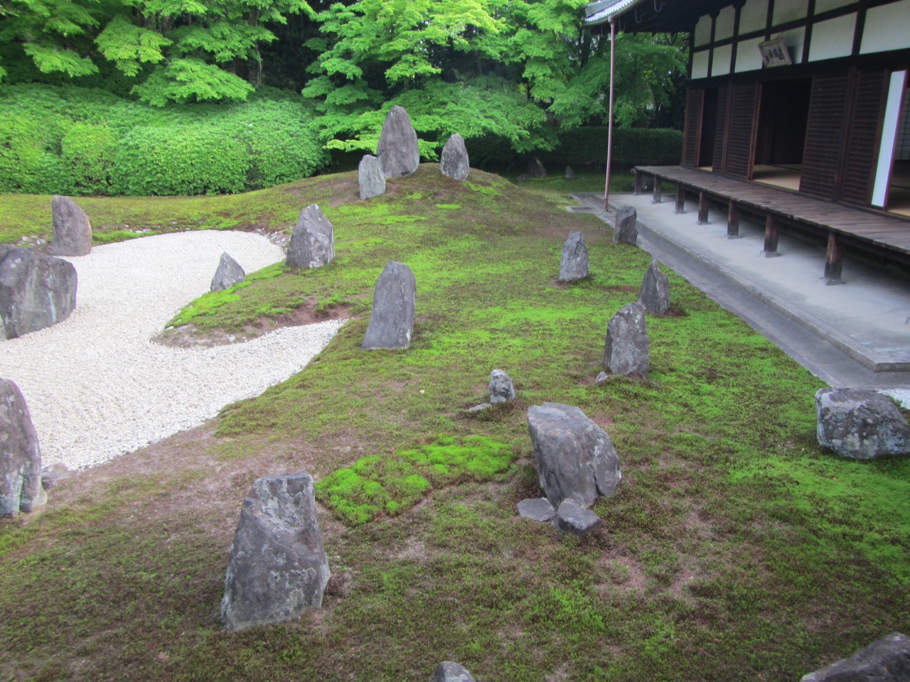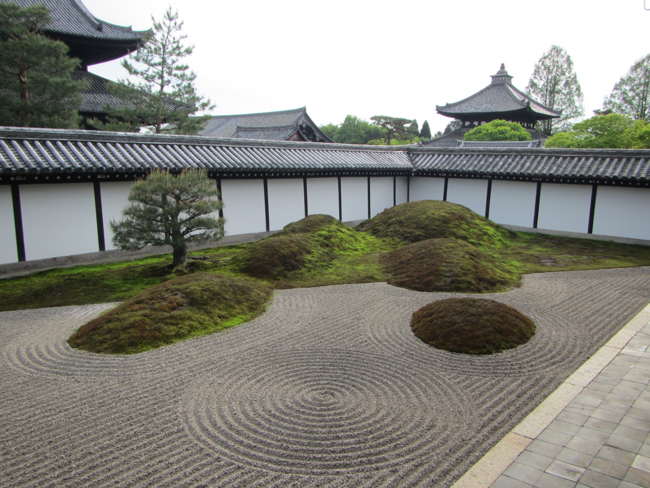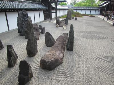 東福寺塔頭 重森三玲作波心庭 が有名です。東福寺から静かな住宅街を3分ほど歩いたところにあります