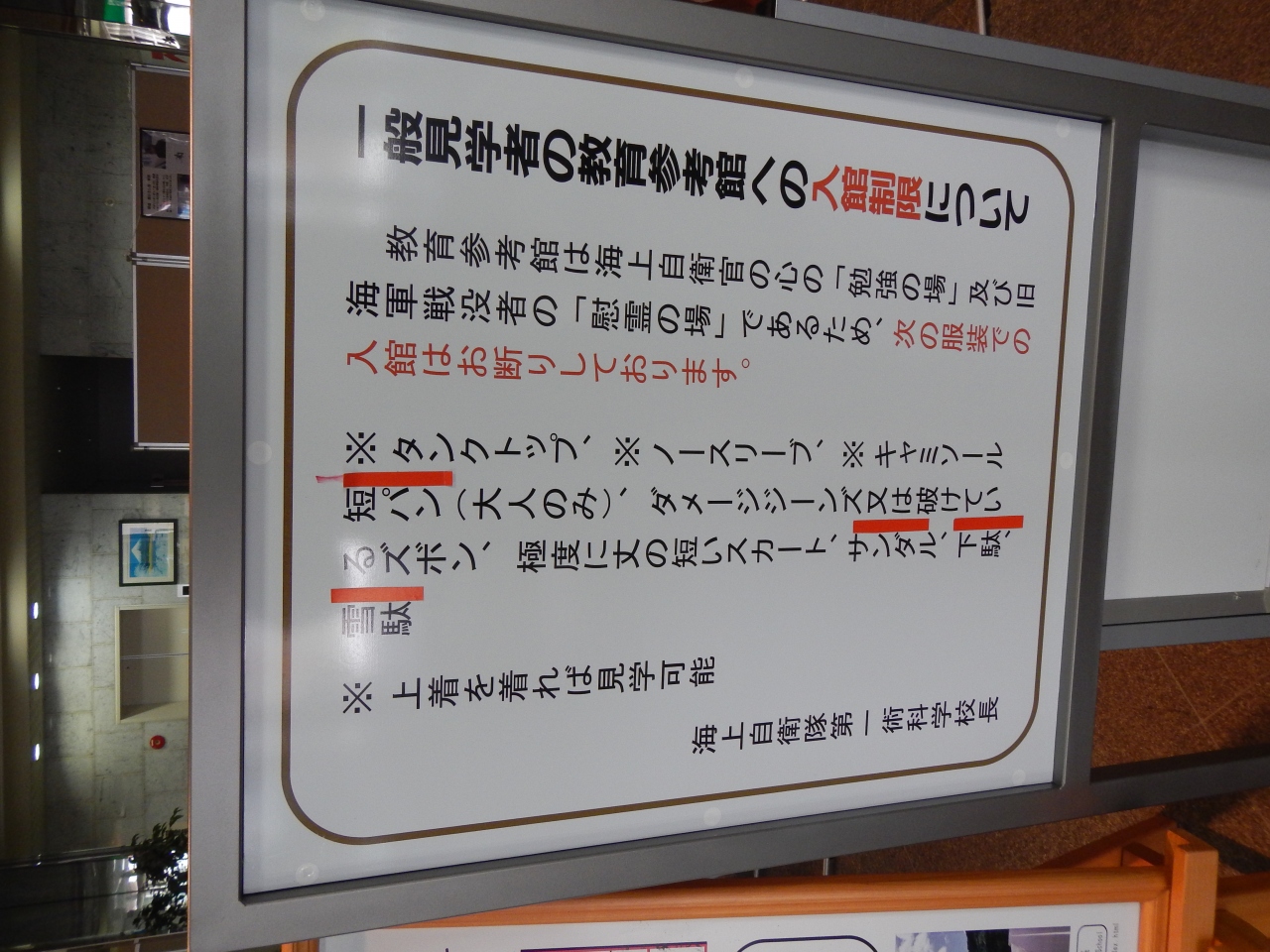 海上自衛隊第1術科学校(旧海軍兵学校跡地)見学コースに入っている施設です。この中は撮影不可です。建物に入る際は、脱帽で一礼する必要があります。