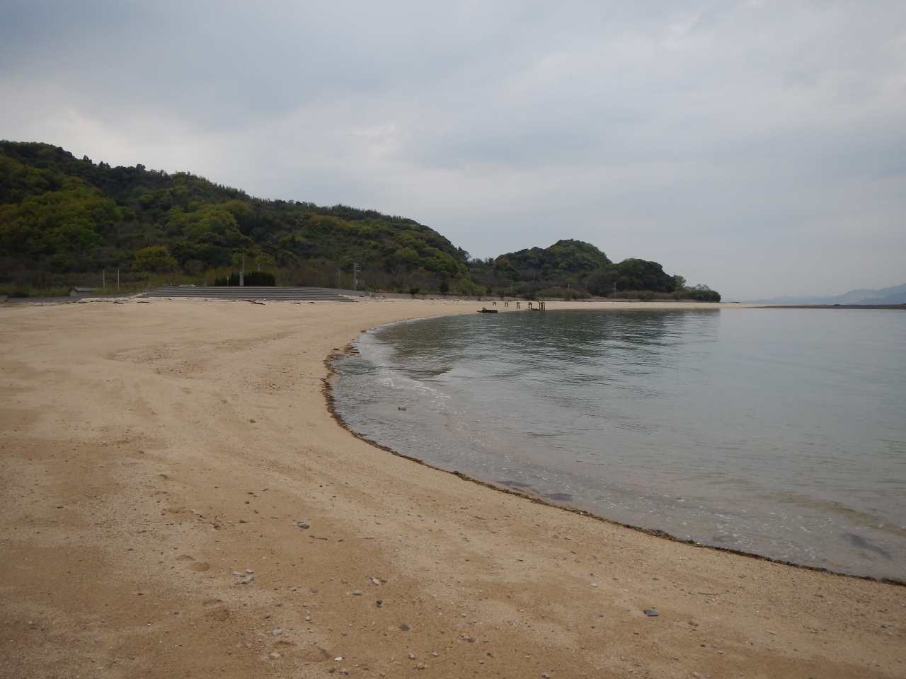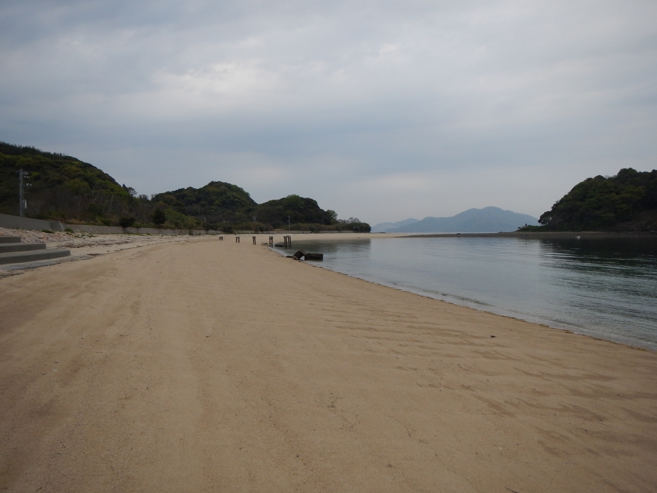 【要注意】2015年4月一部護岸が崩壊しています(写真)柱島の北端にあります。きれいな砂浜がほぼ直線に1?くらい続いています。港からゆっくり歩いて30分くらい。島の移動手段は、島の人の車以外は徒歩のみ。港からは海岸沿いの平らな道です。途中、右手に小柱島が見えます。夏は海水浴で賑わうということですが、恒久的なトイレ・シャワー施設・脱衣場はありませんでした。海岸の中程に、呉にあるクレイトン ベイ ホテルの名前が書いてある施設がありました。使われているようには、感じませんでしたが。