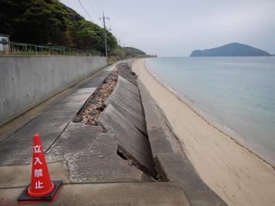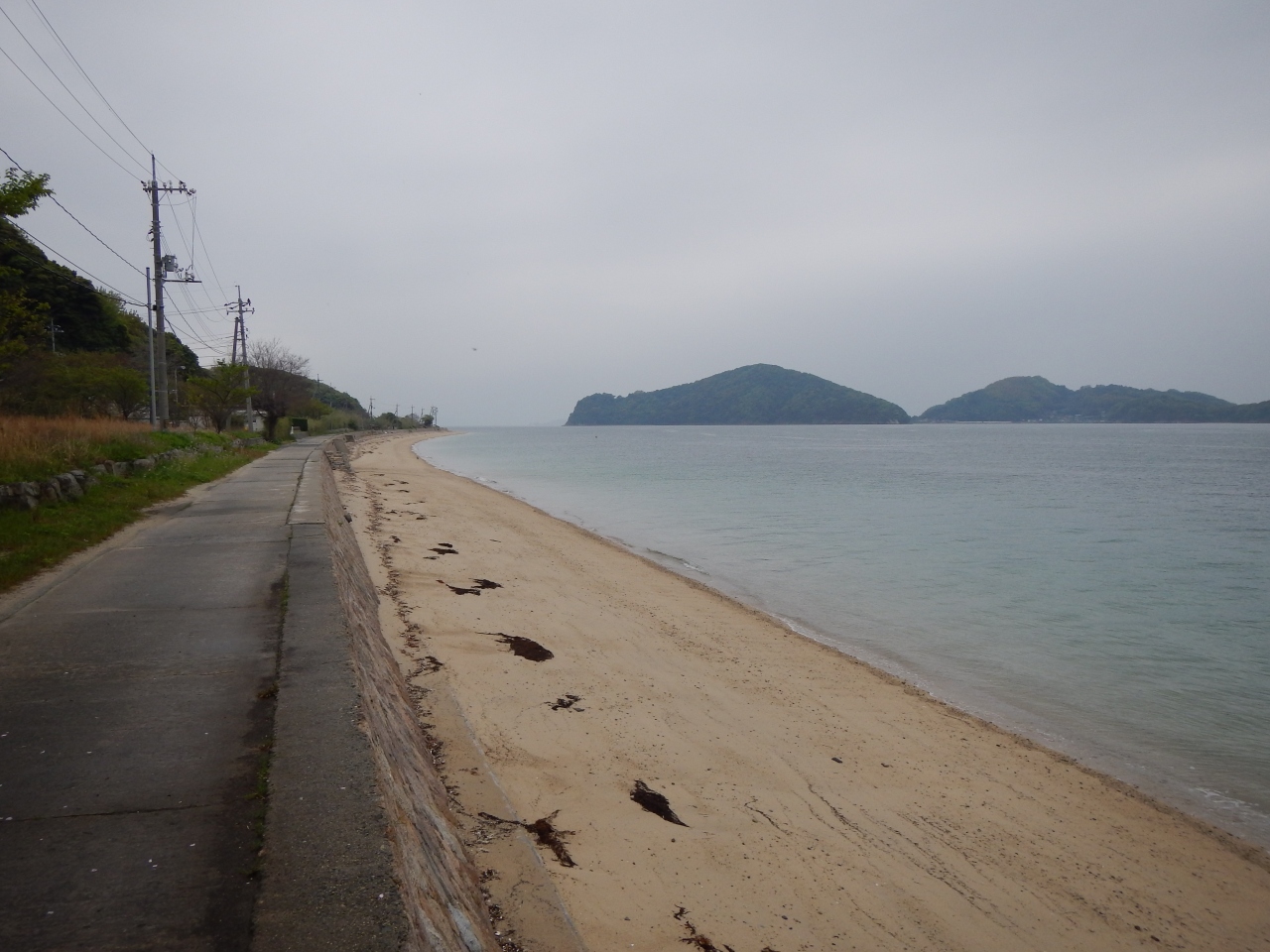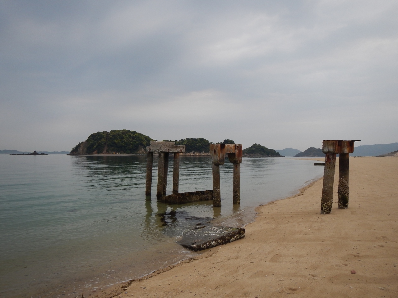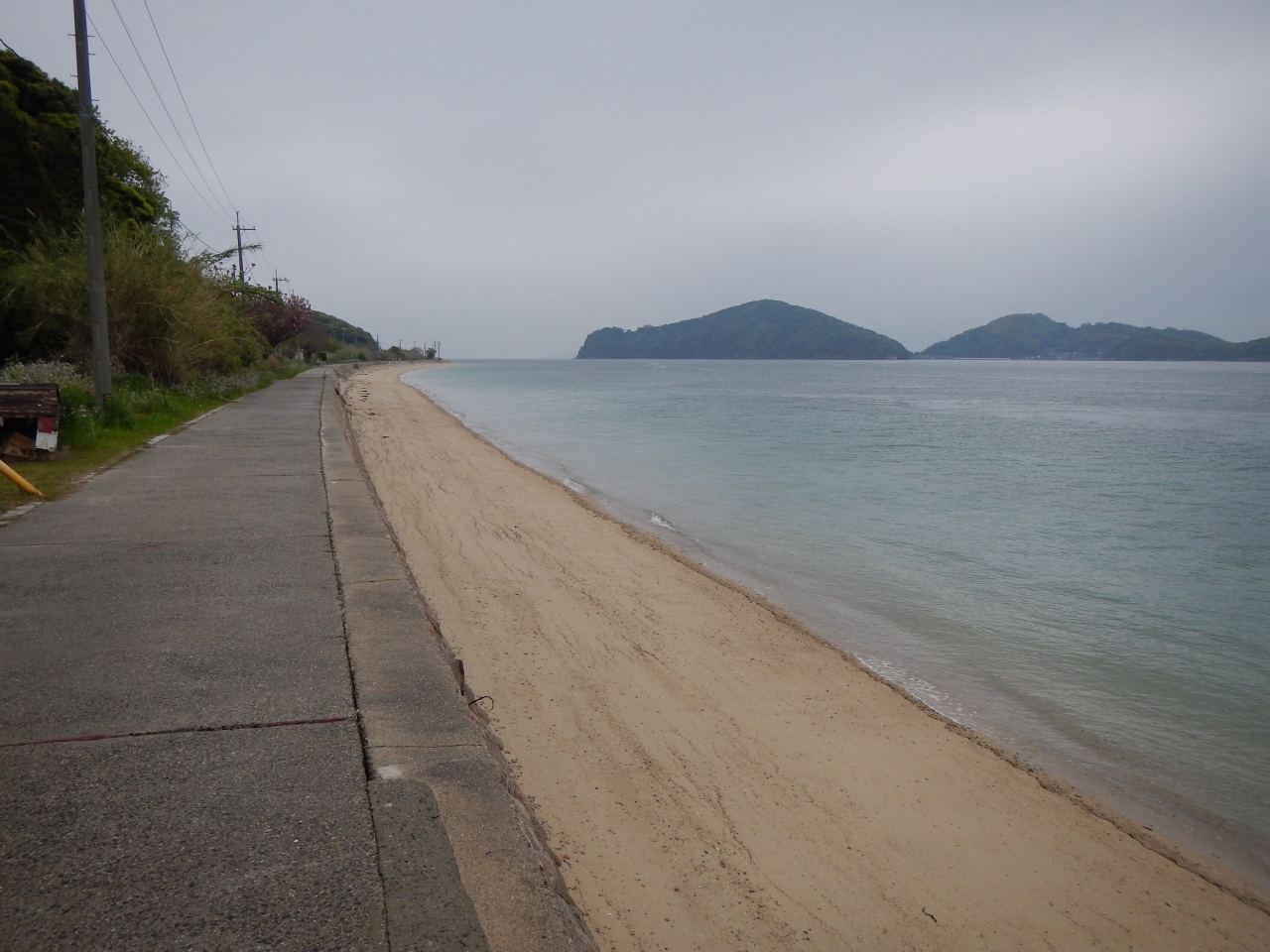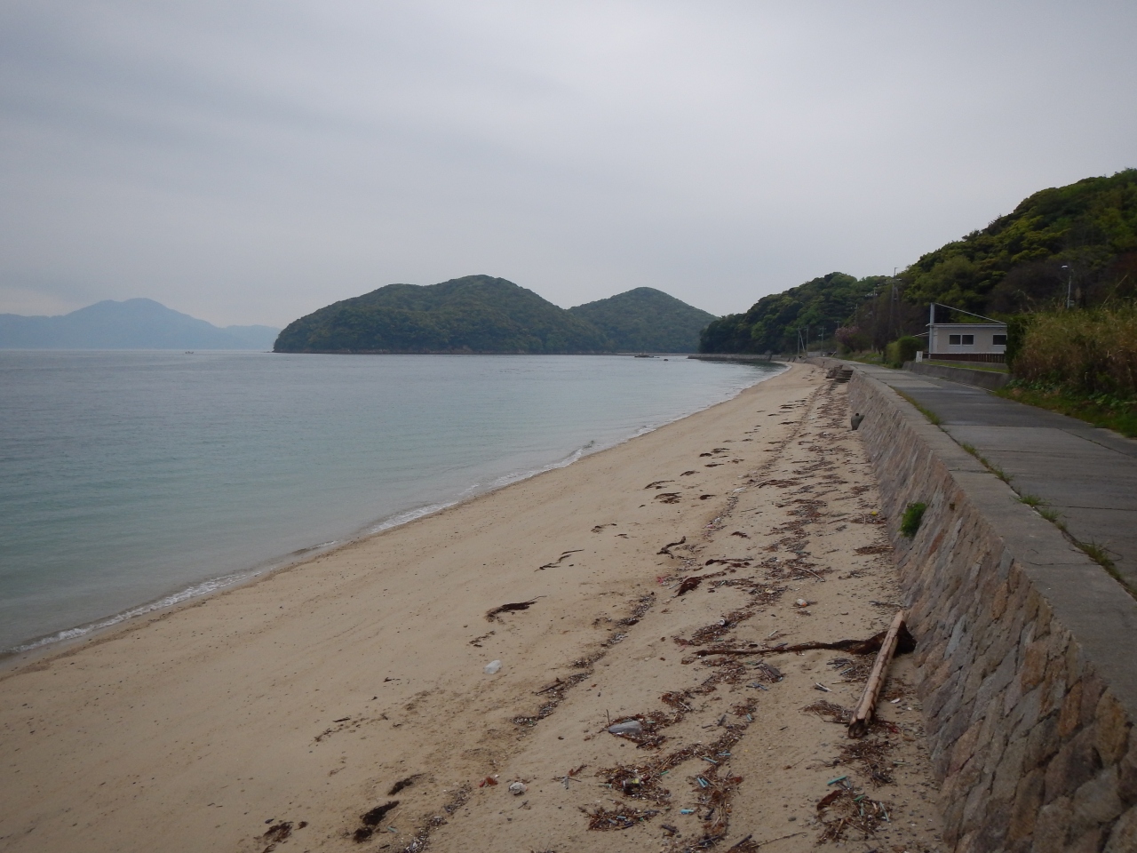 【要注意】2015年4月一部護岸が崩壊しています(写真)柱島の北端にあります。きれいな砂浜がほぼ直線に1?くらい続いています。港からゆっくり歩いて30分くらい。