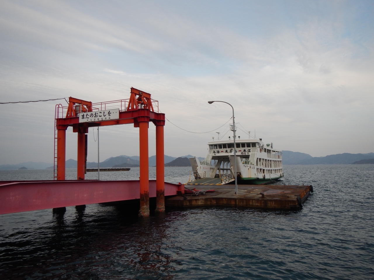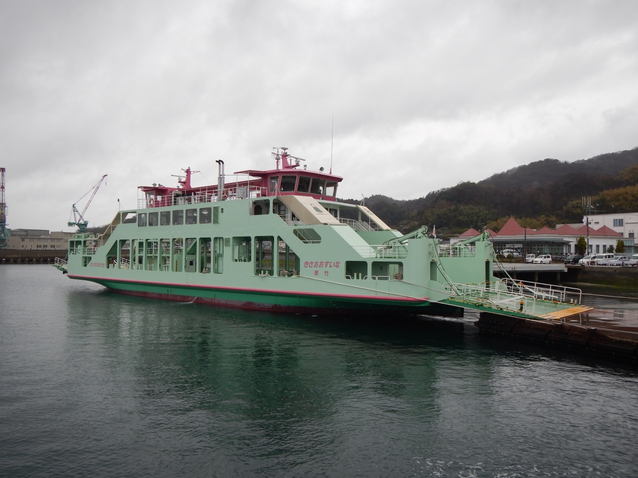 2015年3月、広島県竹原市の竹原港と広島県大崎上島町の白水港を結ぶ定期航路です。フェリーです。日曜日に利用しましたが、地元の人で、混んでました。車で大崎上島を観光するには、これが一番です。竹原港からは、別に島の東・南側に寄港する旅客船もあります。