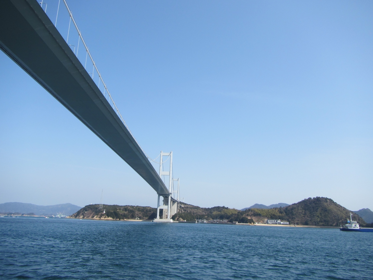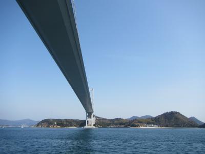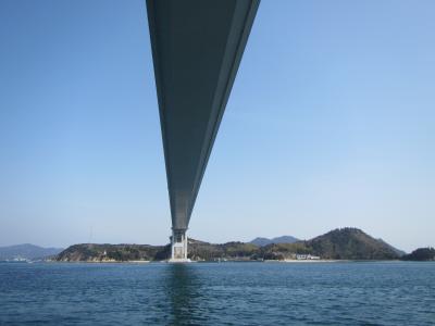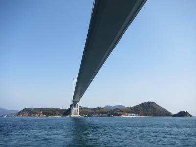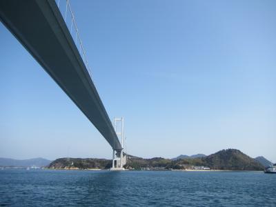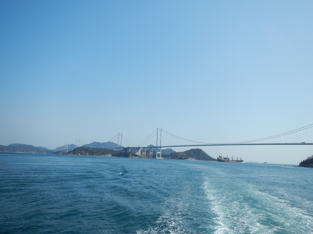 来島海峡大橋をくぐる雄大な景色を眺めることが出来ます。今治港と岡村島を結びます 途中、小大下島・大下島にも寄港します