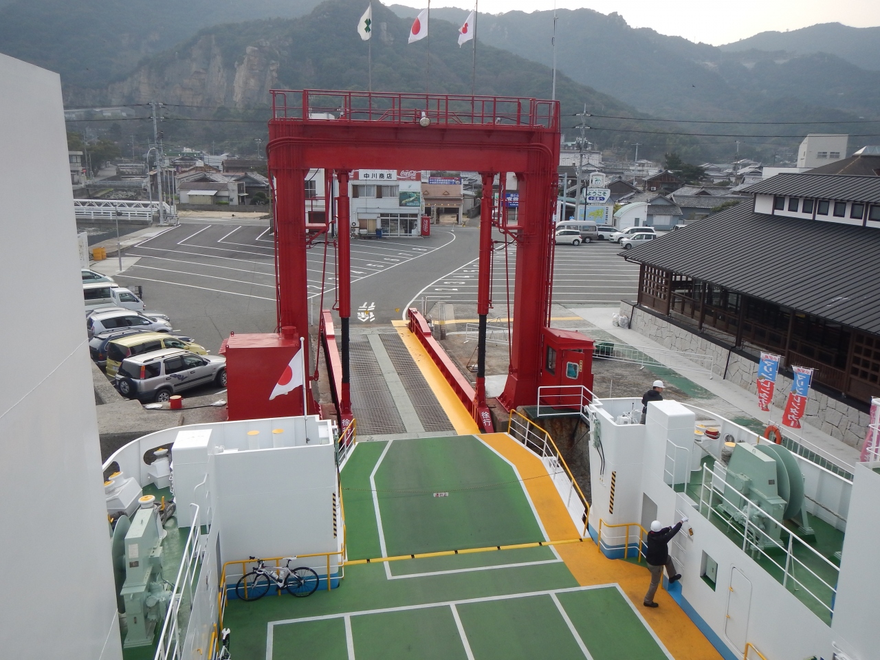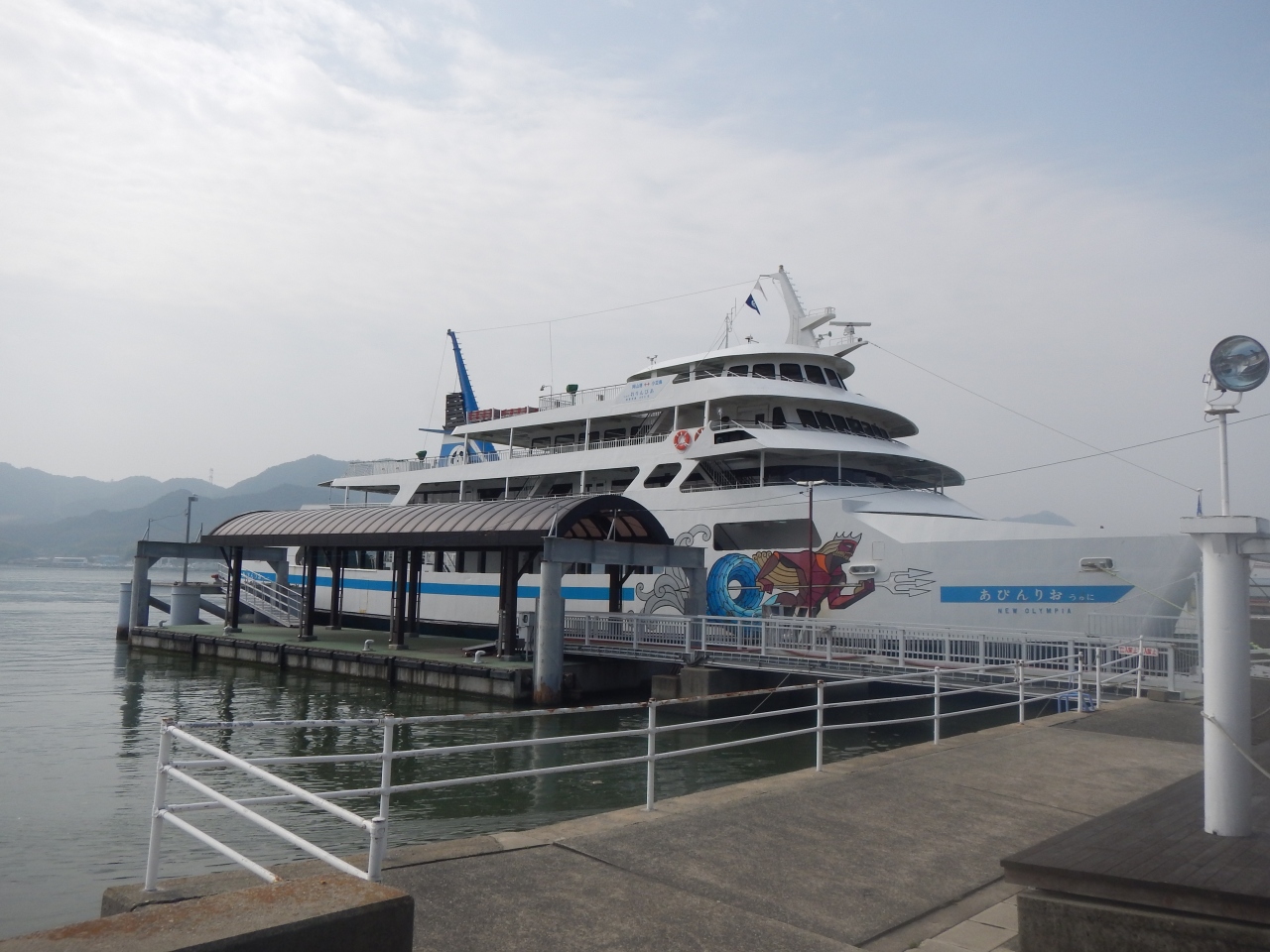 2015年3月今治港と岡村島を結びます。途中、小大下島・大下島にも寄港します。なんと言っても、このフェリーの特徴は、来島海峡大橋をくぐる雄大な景色を眺めることが出来ることです。今治市営ですが、安くはありません。今治港~岡村島片道1時間20分で860円です。