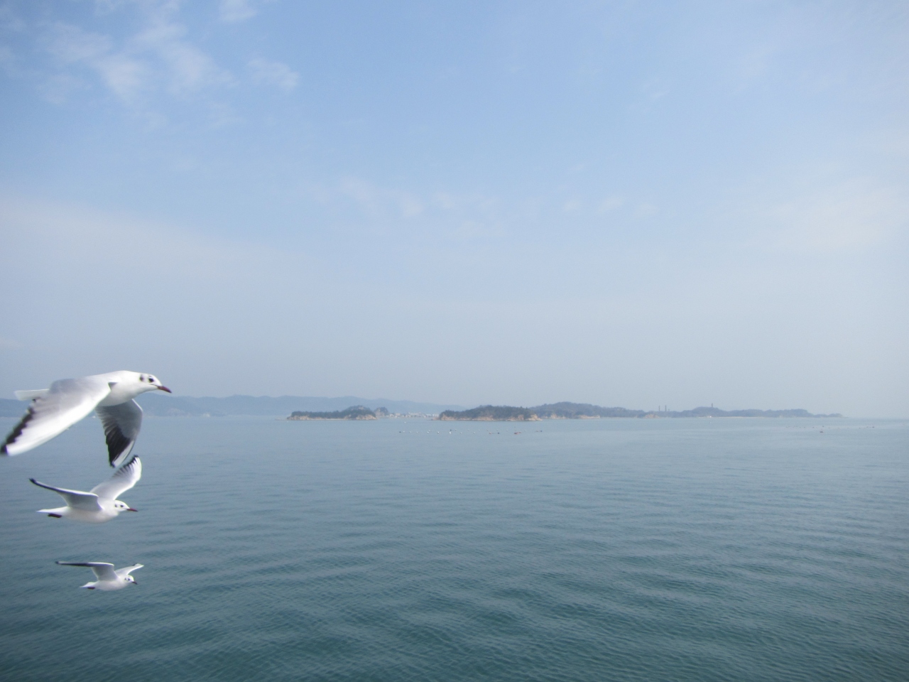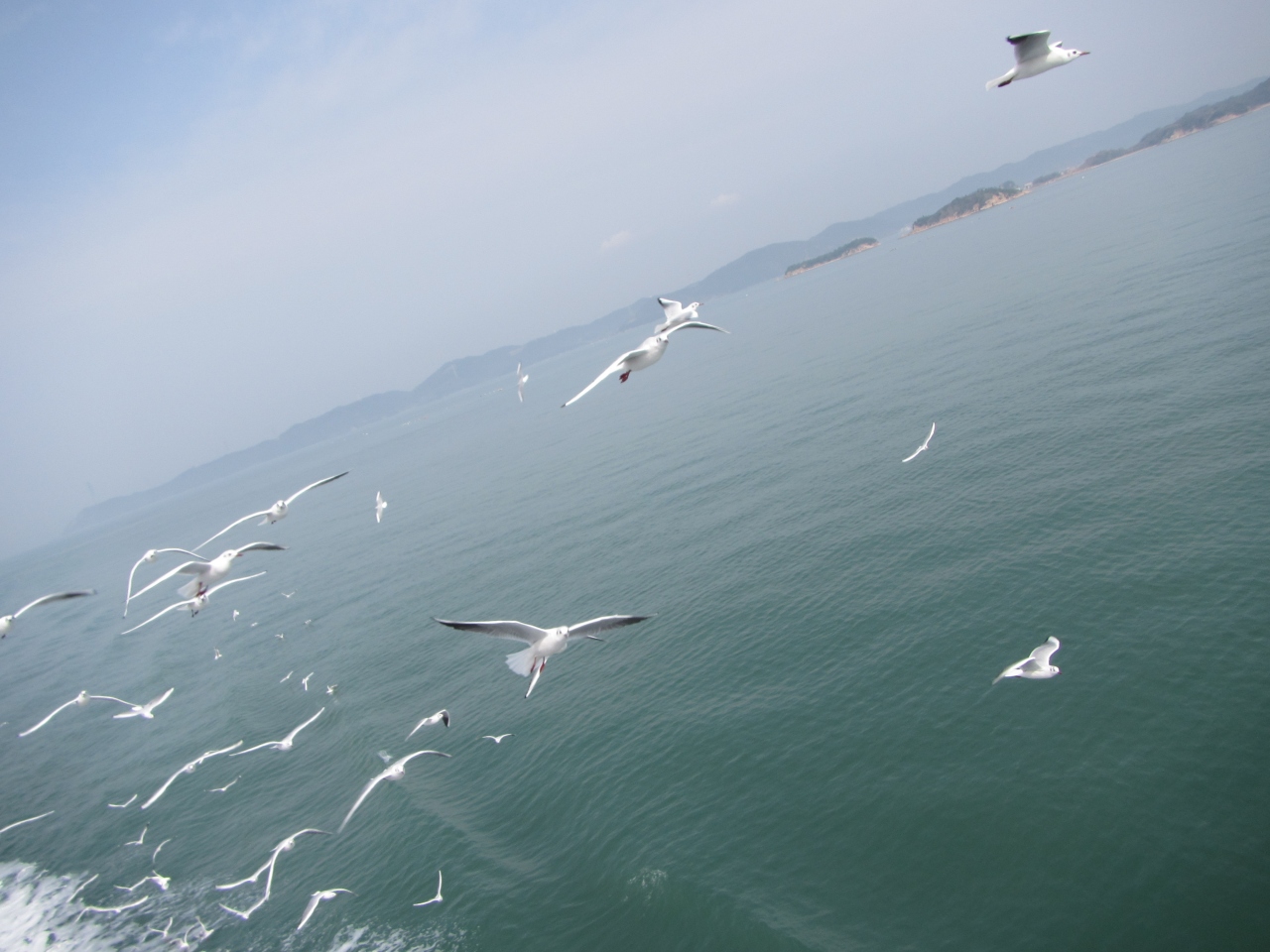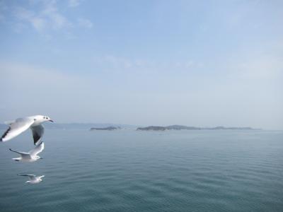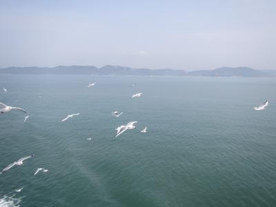 2015年3月新岡山港~小豆島土庄港。2年ぶりに乗りました。このフェリーは最上階がオープンデッキになっており、かつ、前方も開放されているので、船長目線で景色を楽しむことが出来ます。岡山から土庄まで、ずっと、カモメの大群が船の廻りに群がってきます。