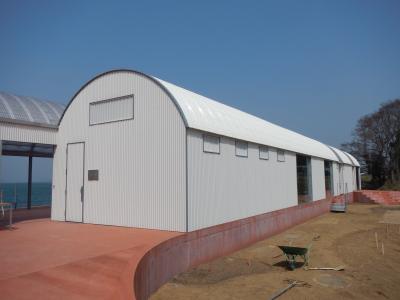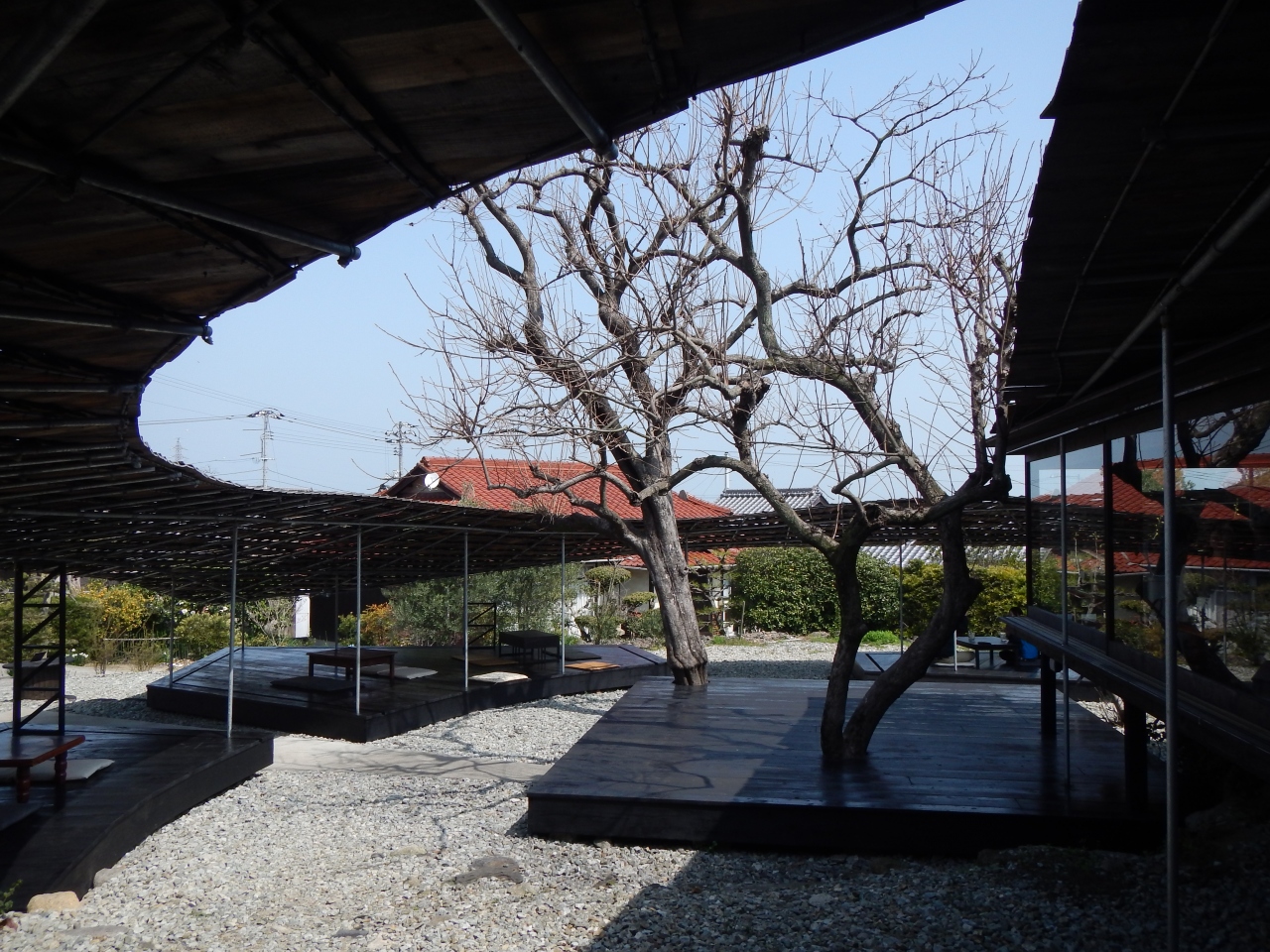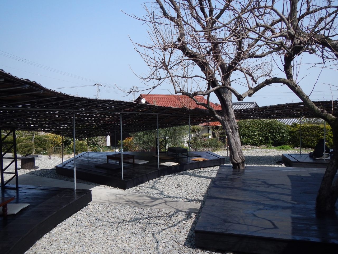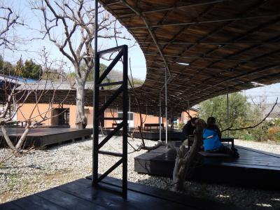 2015年3月22日(日)13:00前に行きましたが、前の庭は工事中で(帰ってHPで確認するとハーブや野菜、果樹の庭 海のガーデンを作っているところでした)やってないのかなと思いつつも、入口から店内をのぞくと、関係者数人が何かしているという感じで、入口に誰もいませんし、眺めの良いテラスにテーブルは置いてあるものの、椅子は置かれていなかったりして(写真)お昼時ですが、今日はまだ営業準備中だと思い、入店せずに帰りました。
