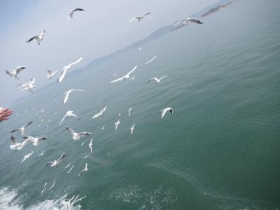 2015年3月新岡山港~小豆島土庄港 2年ぶりに乗りました カモメの大群が船の廻りに群がってきます