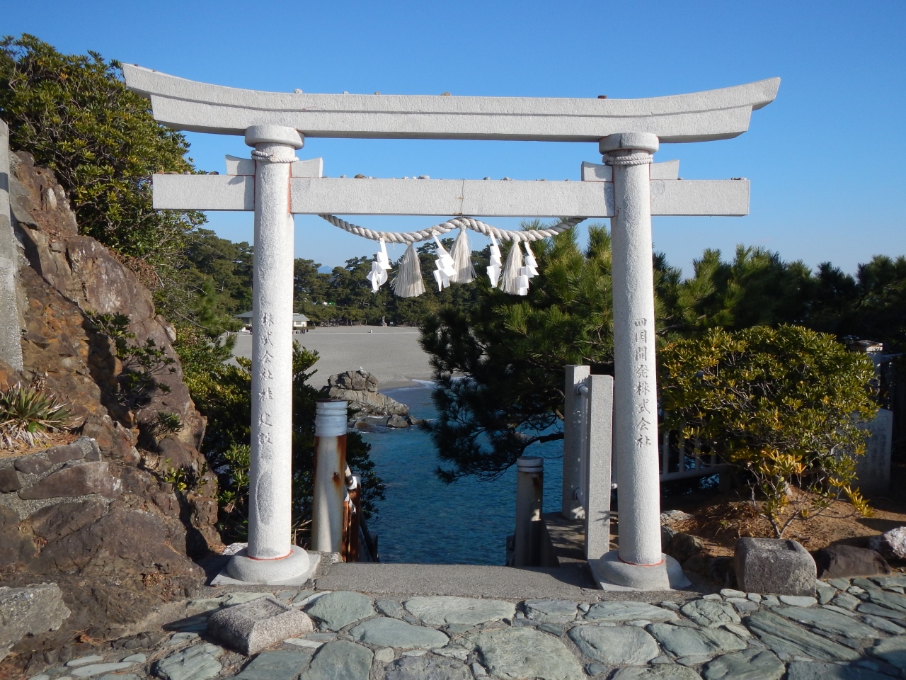 桂浜の海に向かって右手の小高い丘の上にあります。ここからの景色は良いです。正式には、若宮八幡宮です