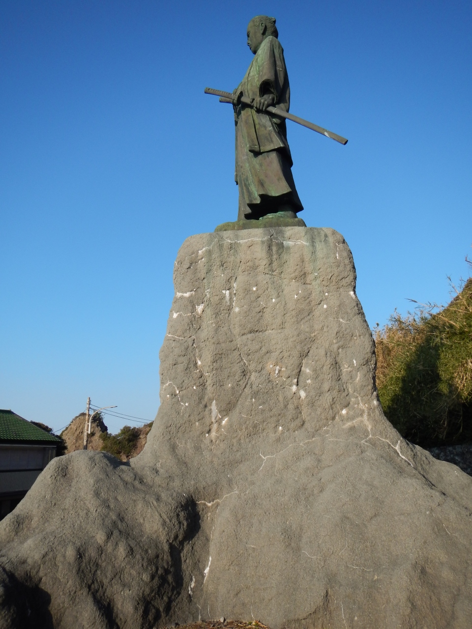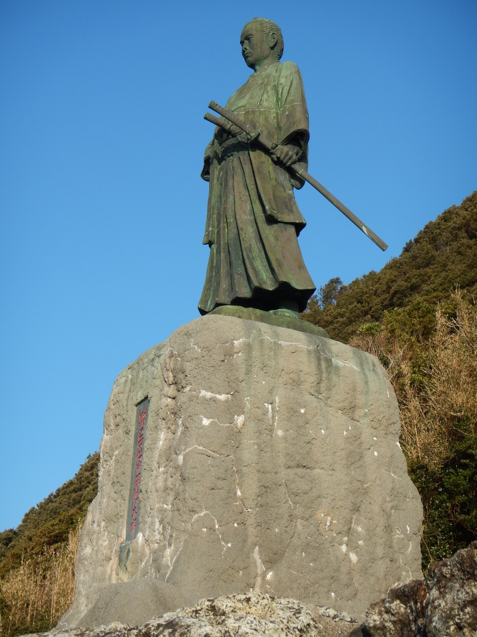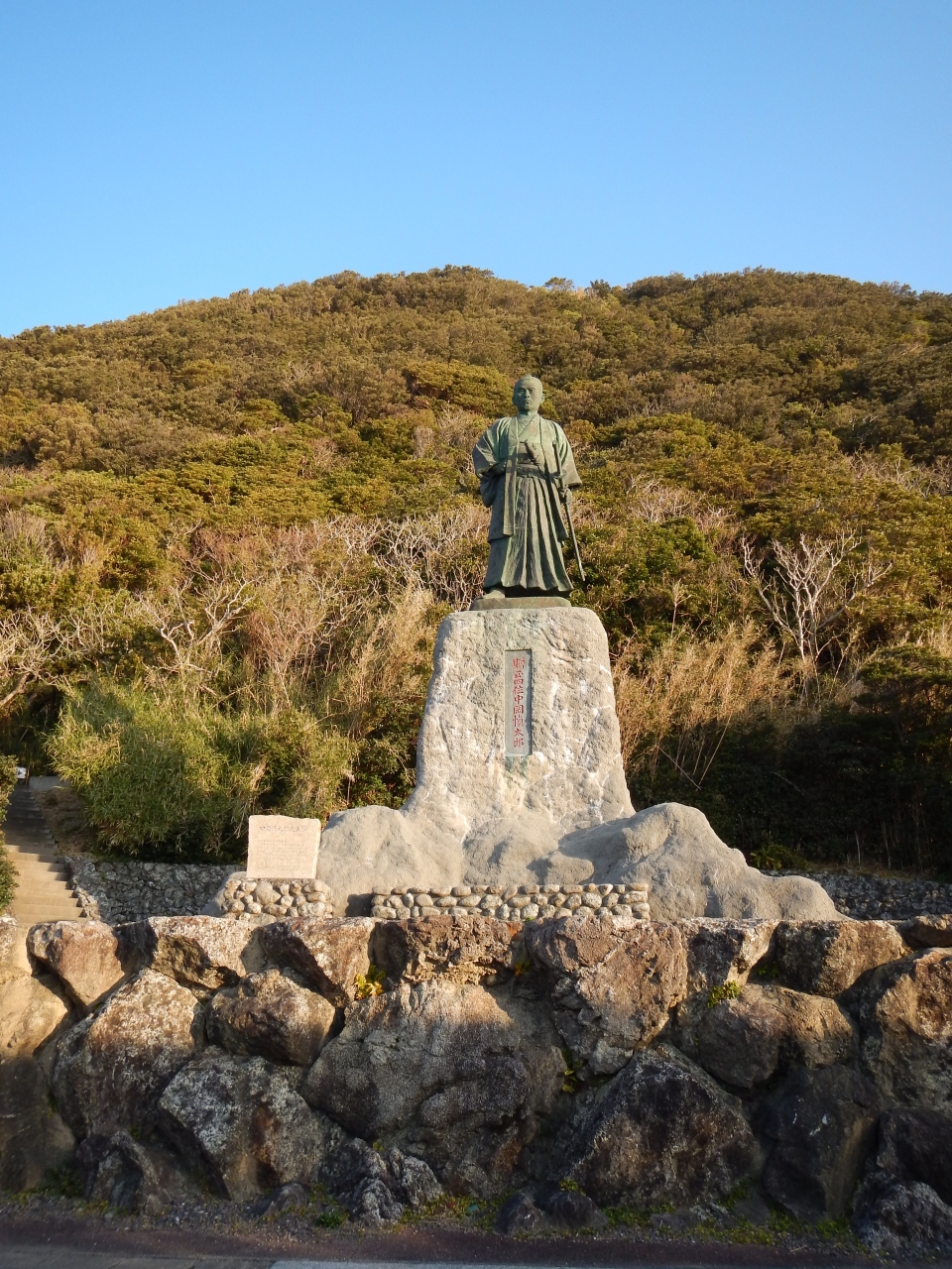 バス停室戸岬の横です 高い台の上に立ってますが、桂浜の坂本龍馬像よりは、小さくて低いです