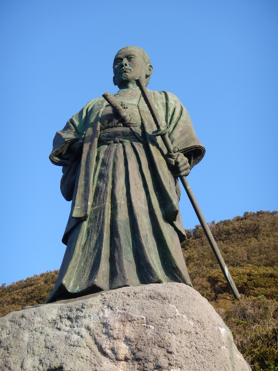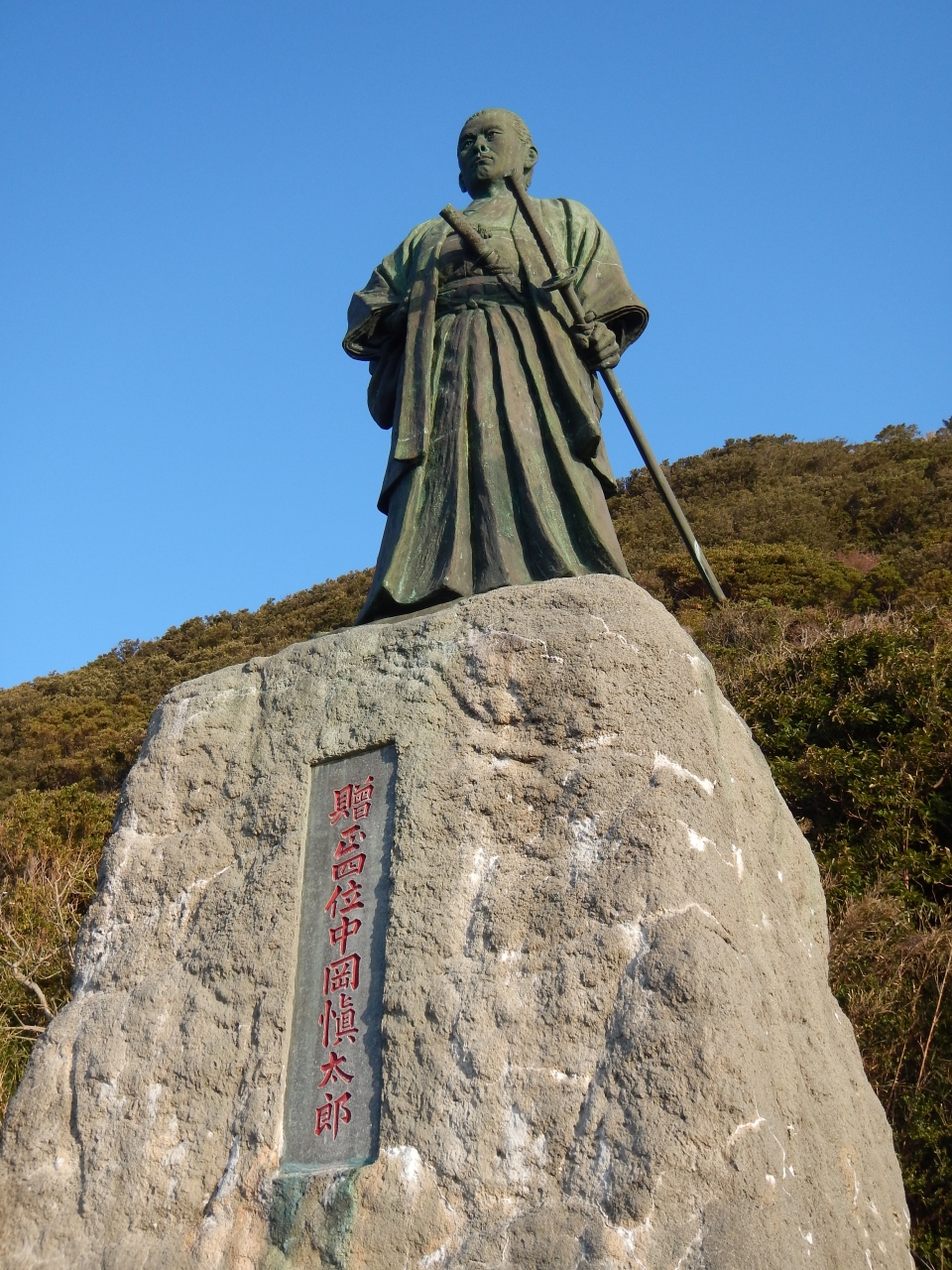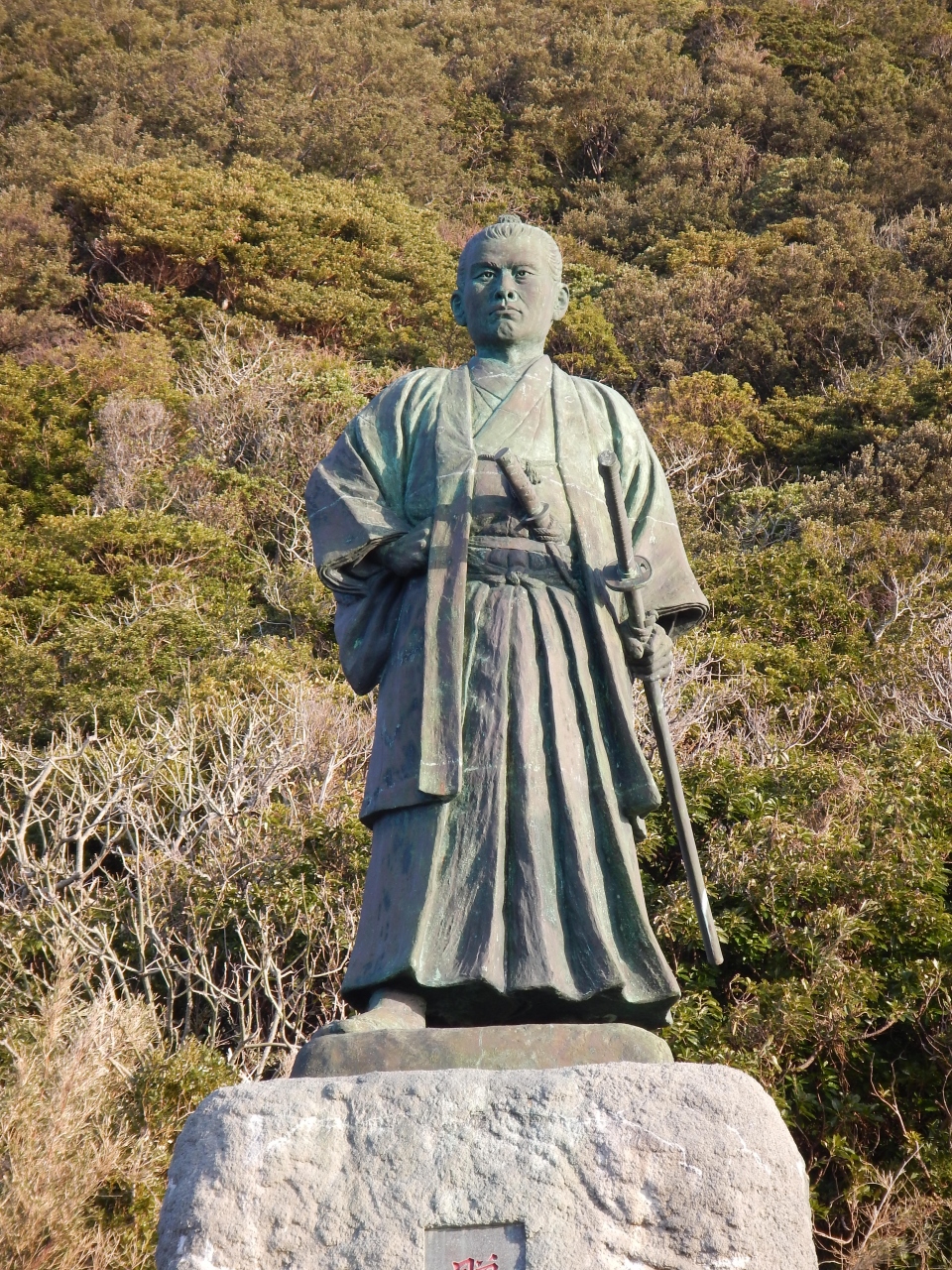 バス停室戸岬の横です 高い台の上に立ってますが、桂浜の坂本龍馬像よりは、小さくて低いです