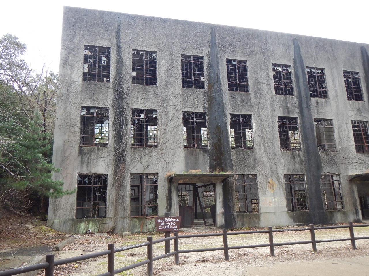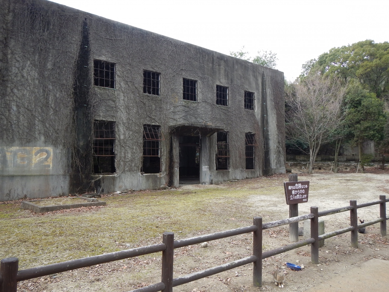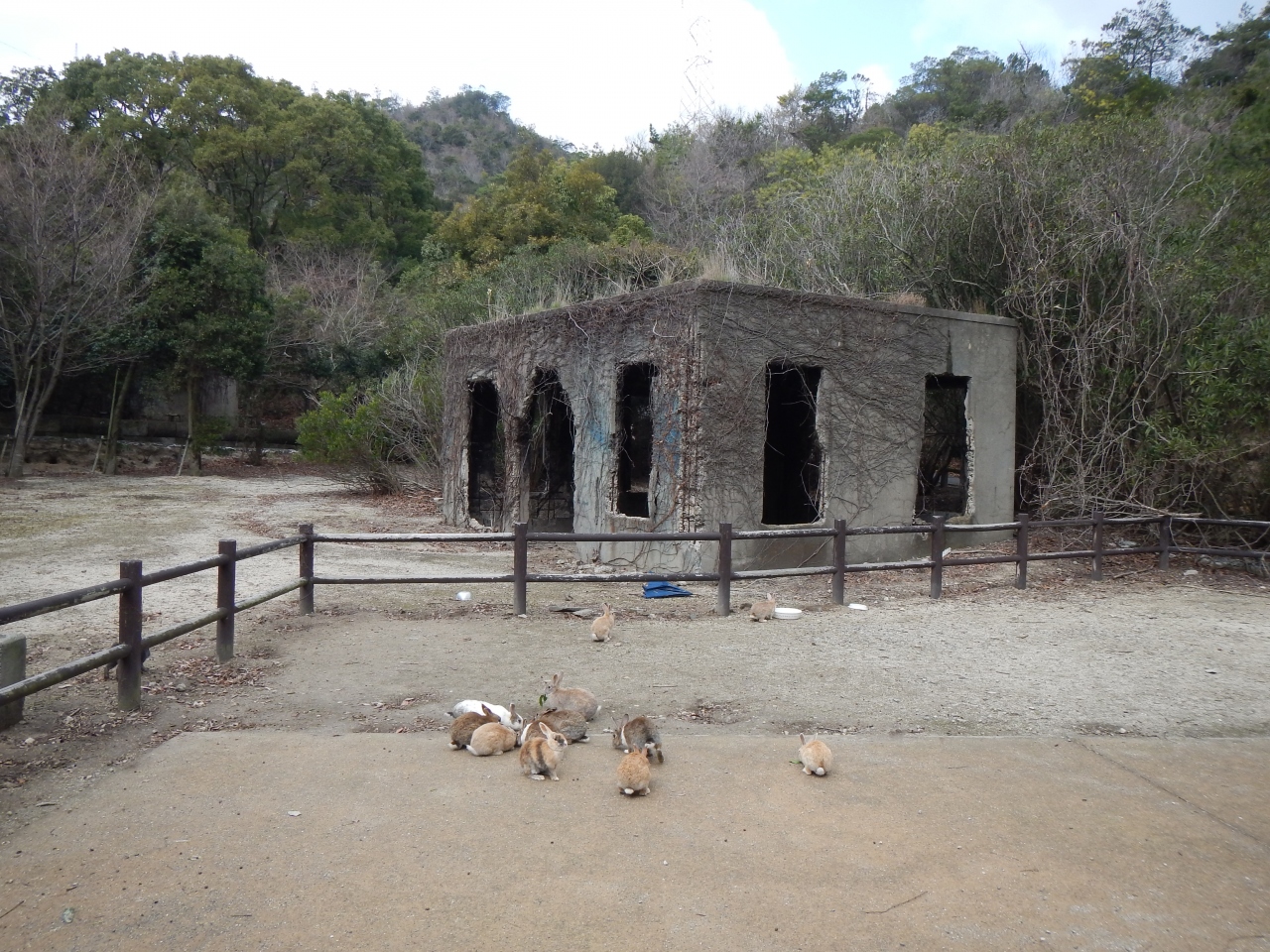旧日本軍の毒ガス工場があった島です。島のいたるところに軍事施設跡があります。かなり傷んでいるので、うさぎさん以外立入禁止です。