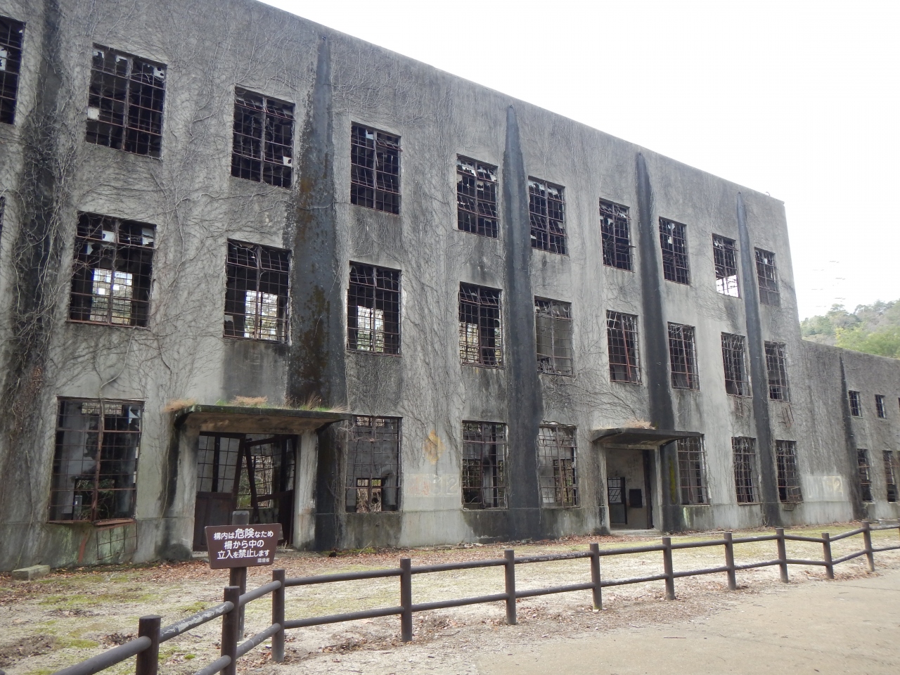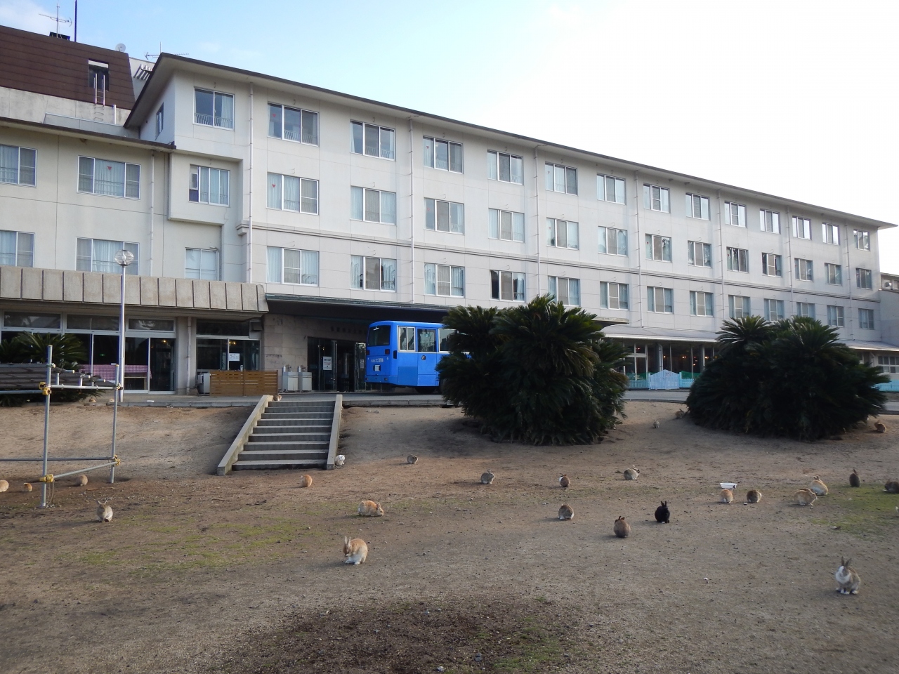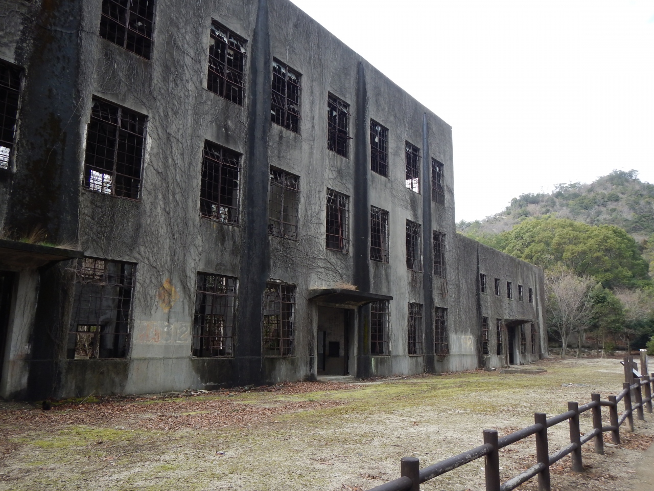 旧日本軍の毒ガス工場があった島です。島のいたるところに軍事施設跡があります。かなり傷んでいるので、うさぎさん以外立入禁止です。
