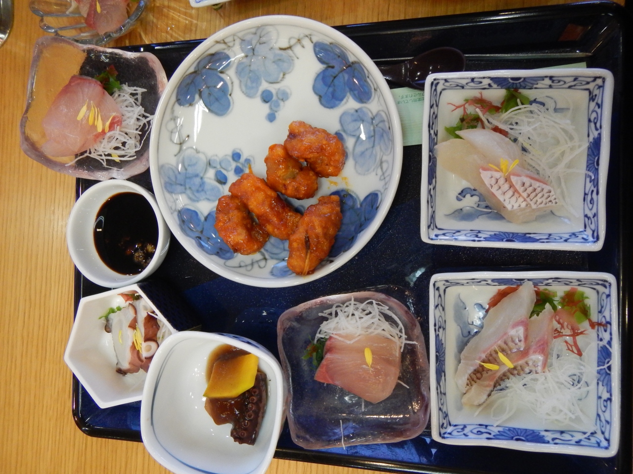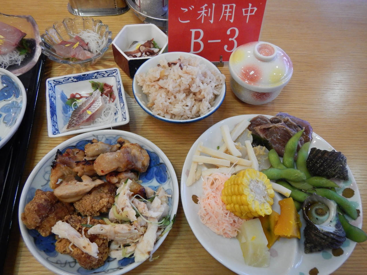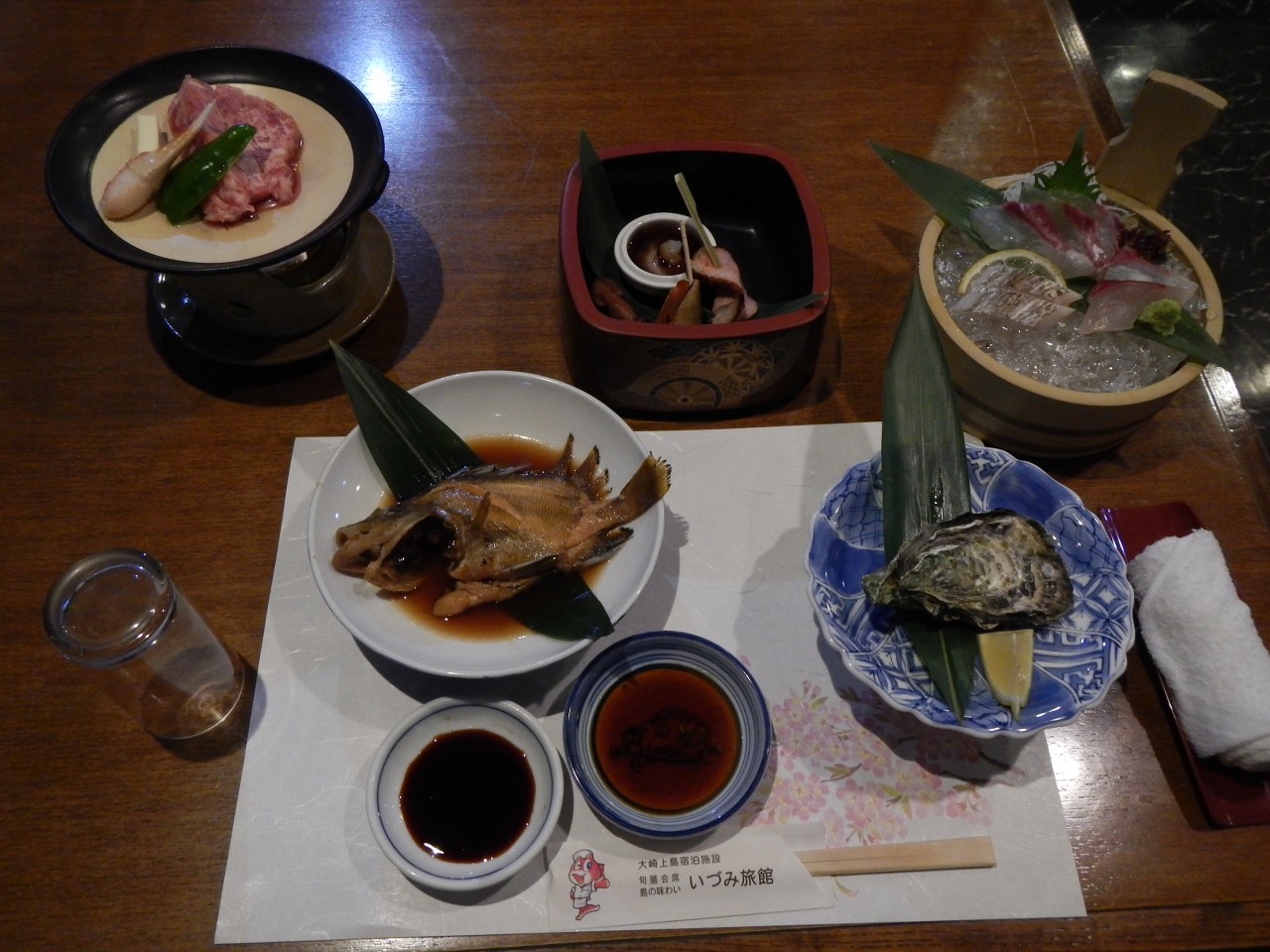 料理は煮魚・お刺身・お肉・牡蠣などでした(写真)- 旅行時期