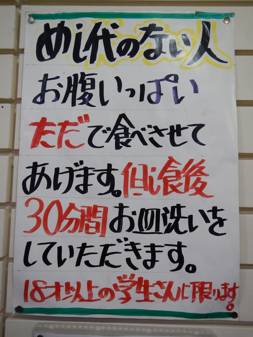 2015年3月 ただで腹一杯食べることはできませんでした 1年前は誰でも可でしたが、今回行くと、18才以上の学生限定になってました