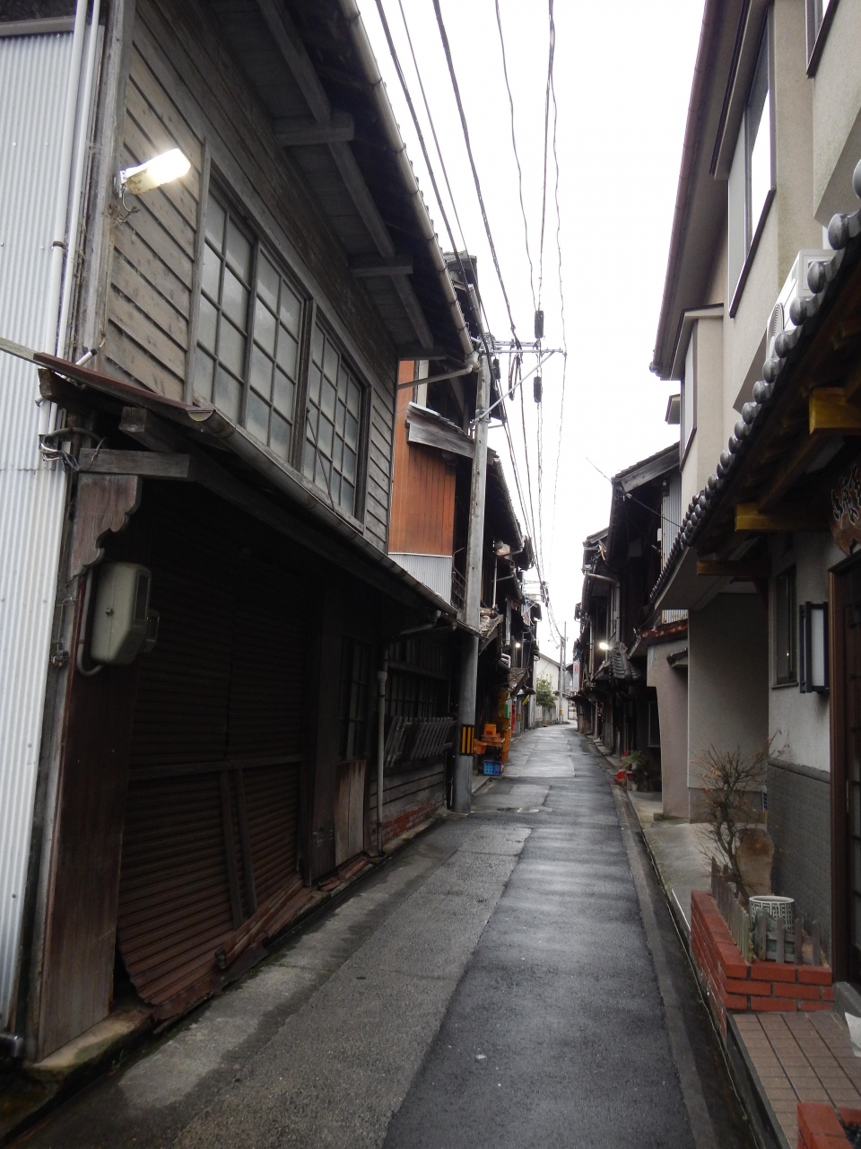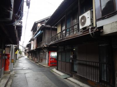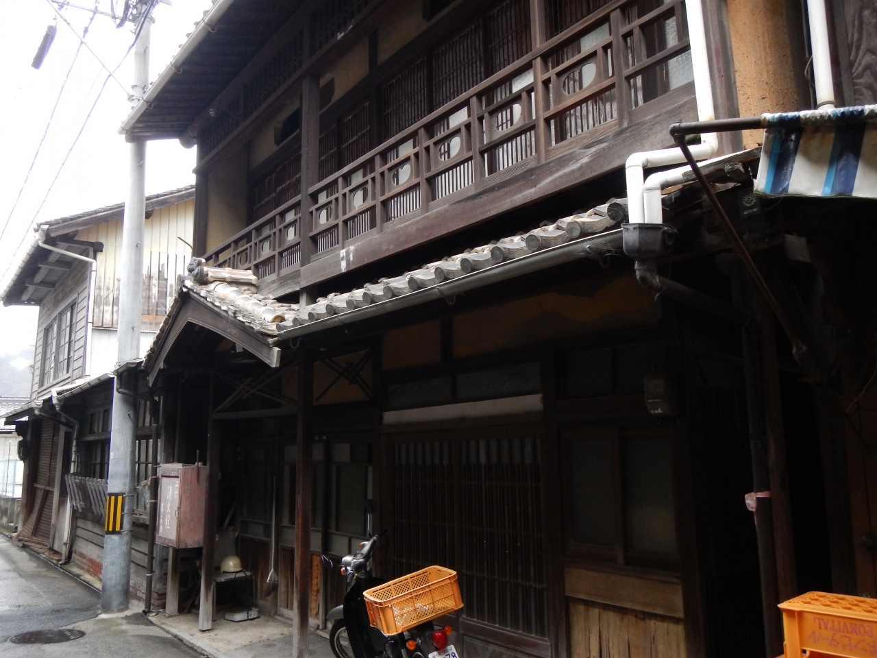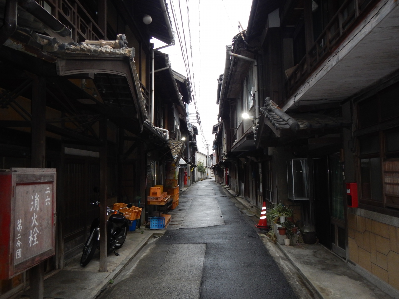2015年3月現在。潮待ち・風待ちの港町でした。旅館街、遊郭街として栄えていた名残の木造の建物が並んでいます。