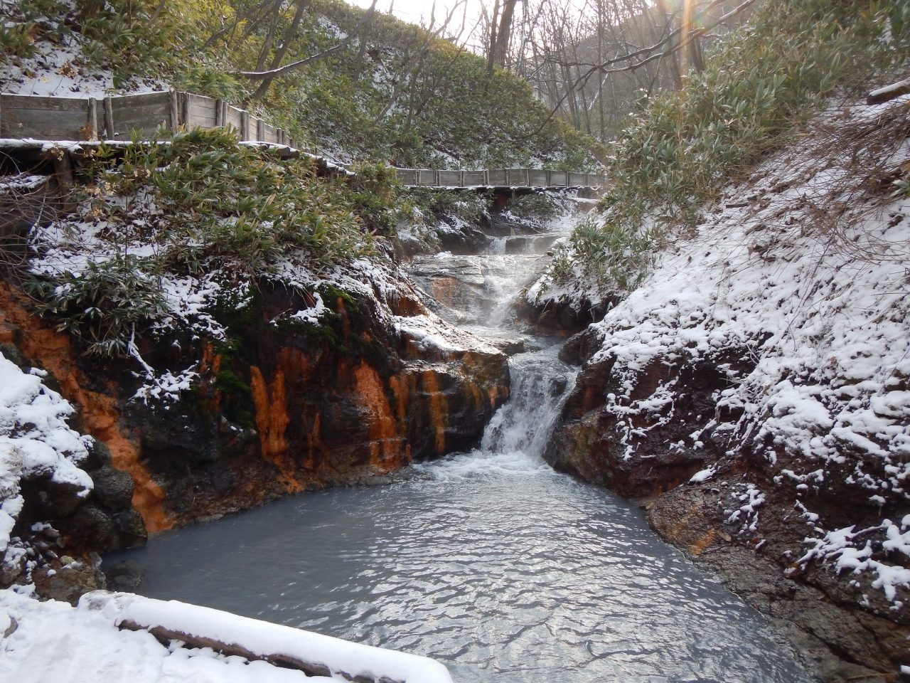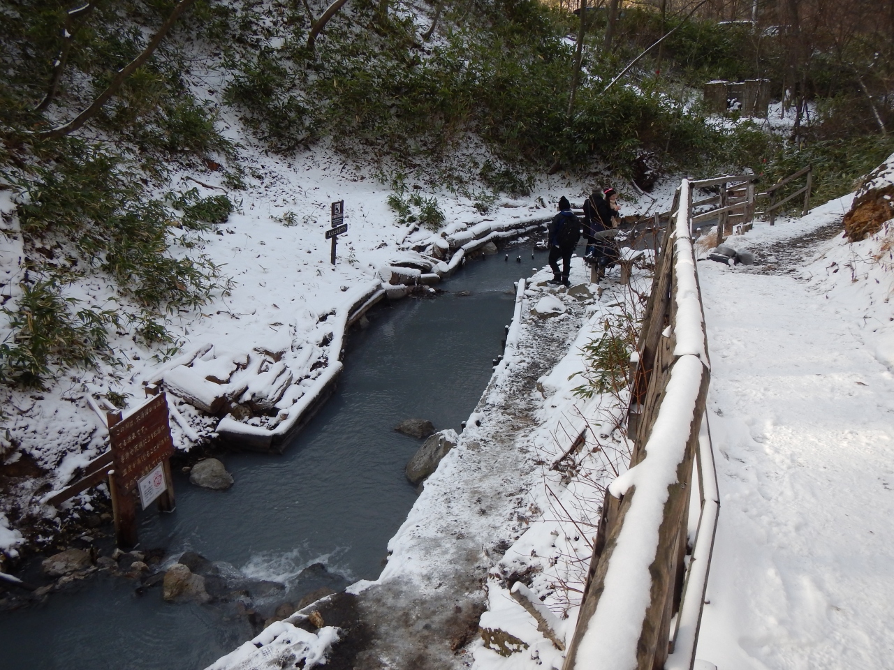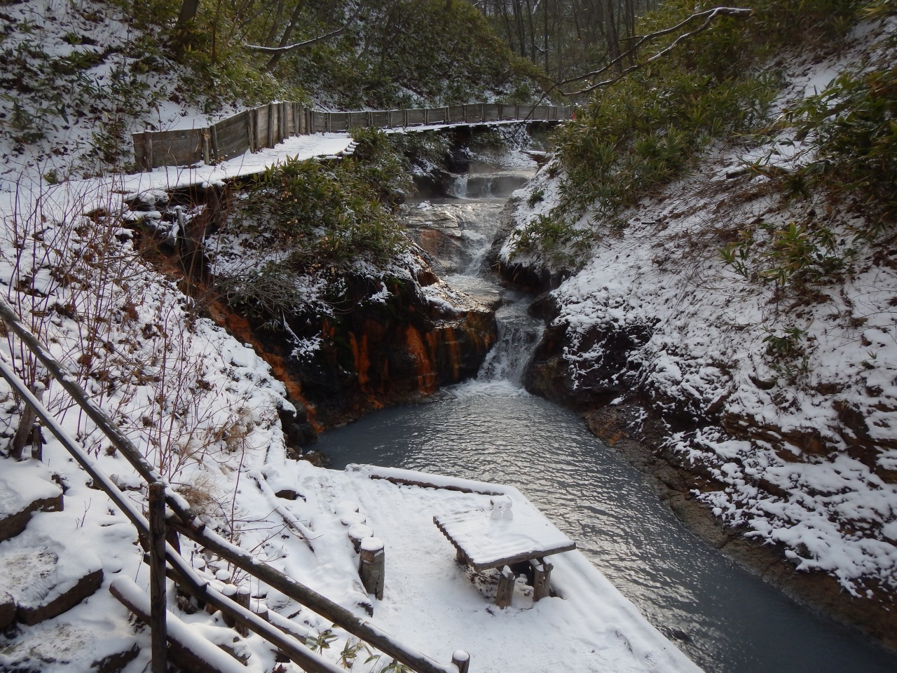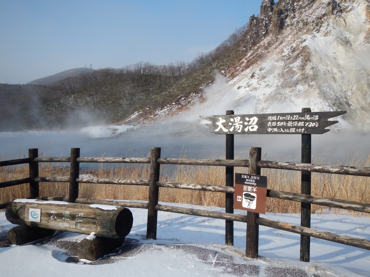 2014年12月雪が凍結して、非常に危険な状態でした 大湯沼・奧の湯に行く複数のルートがあります ビジターセンターで長靴の無料貸し出し やってました