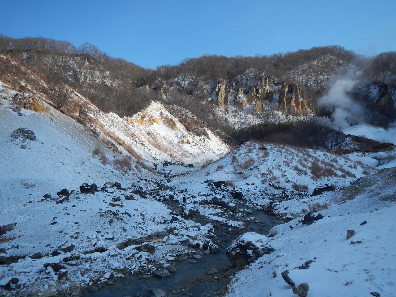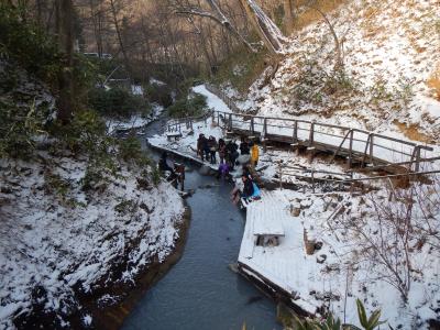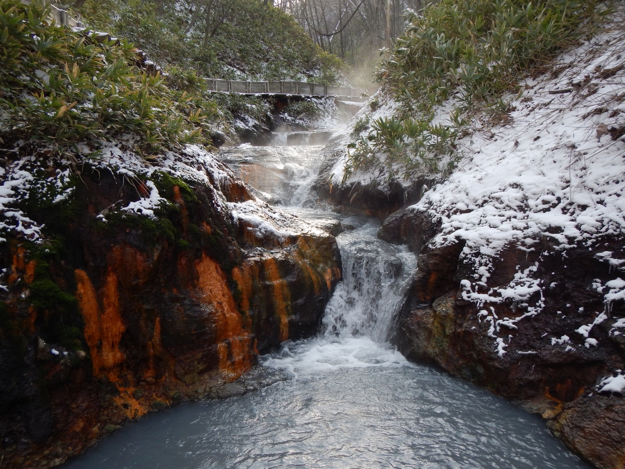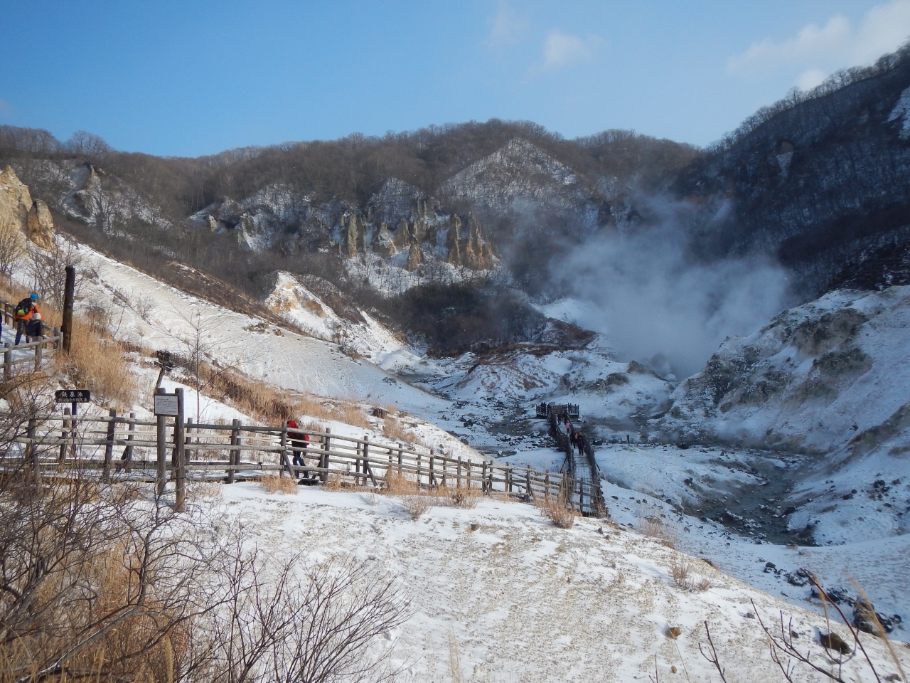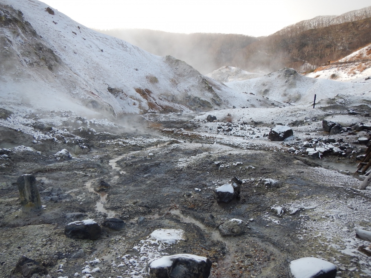 2014年12月雪が凍結して、非常に危険な状態でした 大湯沼・奧の湯に行く複数のルートがあります ビジターセンターで長靴の無料貸し出し やってました