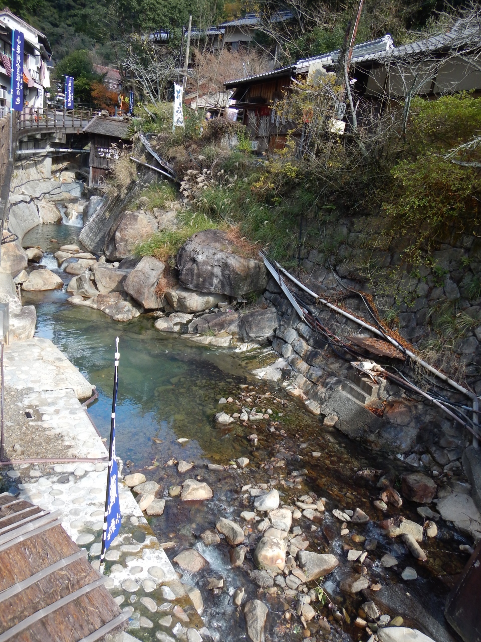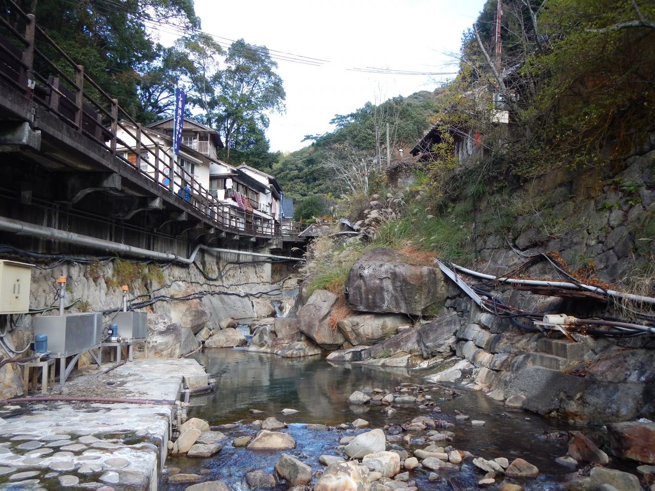 2014年12月今年6回目の湯の峰温泉です 川に源泉をくみ出す井戸が立っています 相変わらず、外国人個人客が多かったです