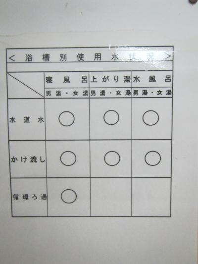 うたせ湯・寝湯以外は、源泉掛け流しですが、加水しています。